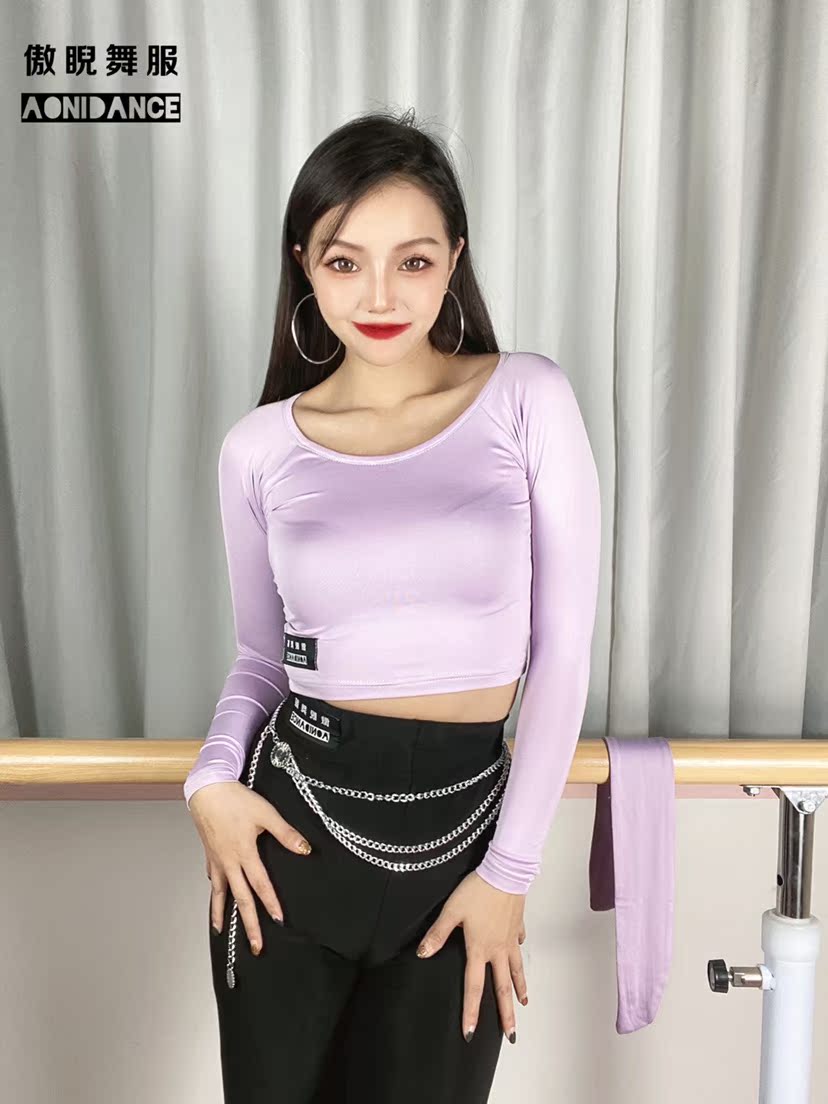 Proud Dancing Outfit New Adult Female Reveal Navel Chest Front Lacing Long Sleeve Latin Dance Practice 6 Color A69