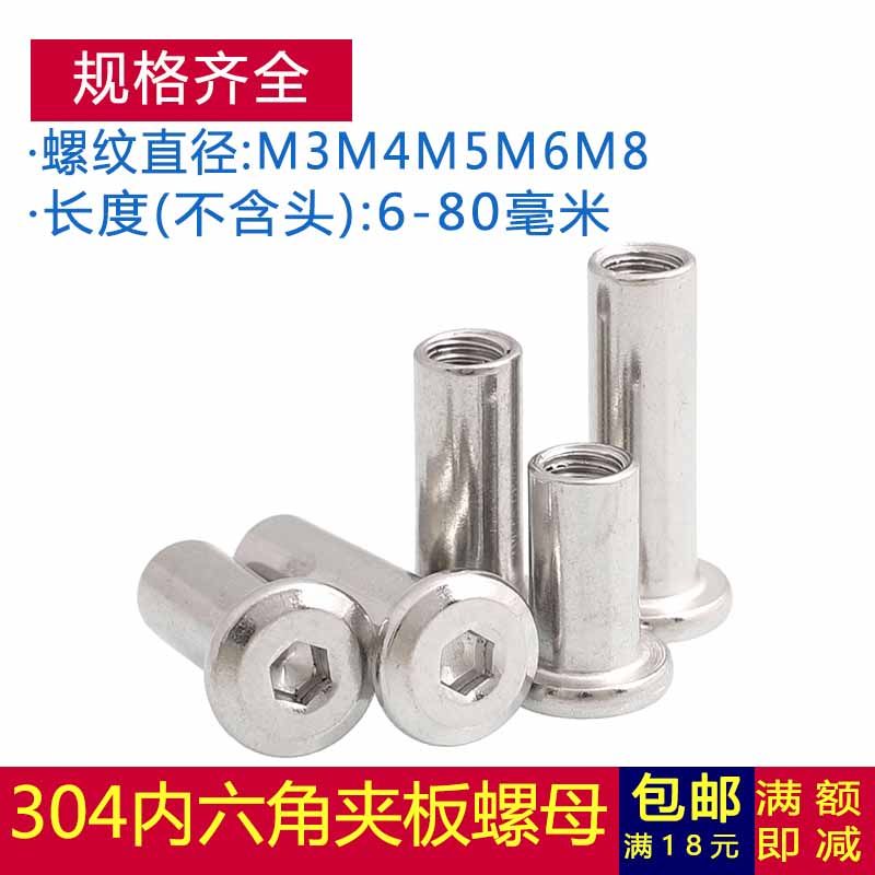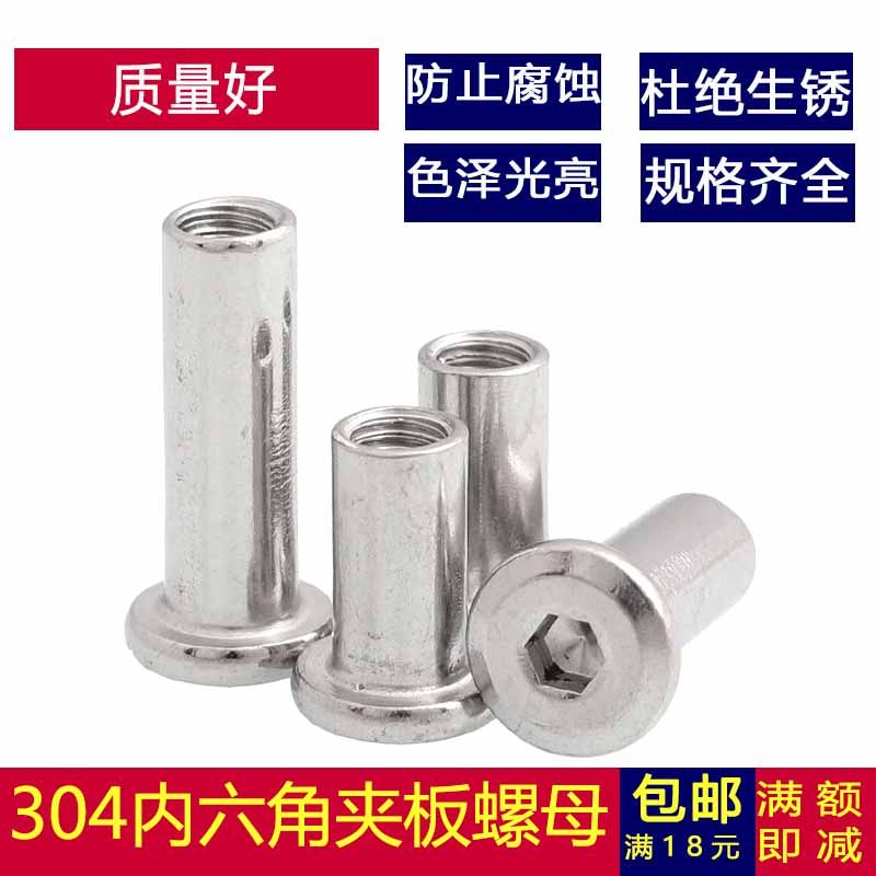 304 stainless steel splinter nut hexagonal furniture to lock nut M3M4M5M6M8*6*8*10*15-80