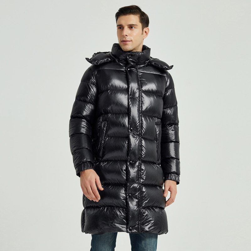 2021 winter new down jacket men's mid-length version thickened shiny super-long over-the-knee tide brand men's jacket
