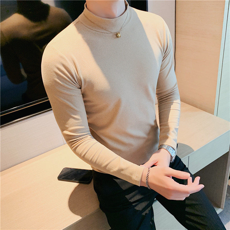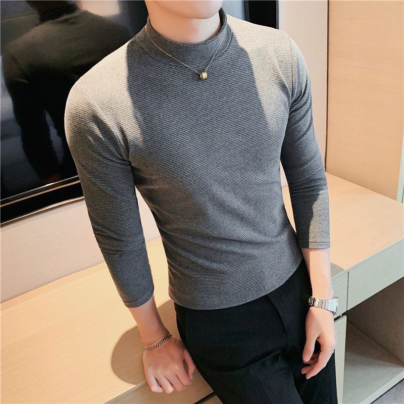 Semi-high-collar blouse men in spring and autumn pattern with tight tight stripes in the tight stripes of the man Develvet Grinding Sweater