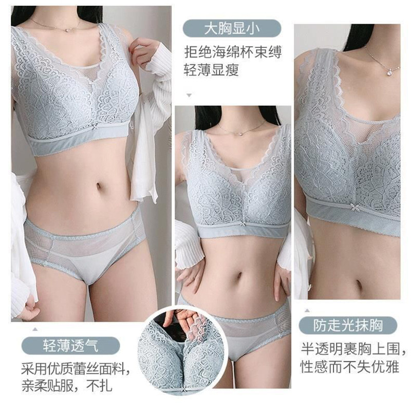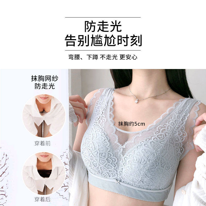 Underwear thin section no steel ring bra tube top beautiful back big chest showing small breasts women's bra anti-sagging sexy lace