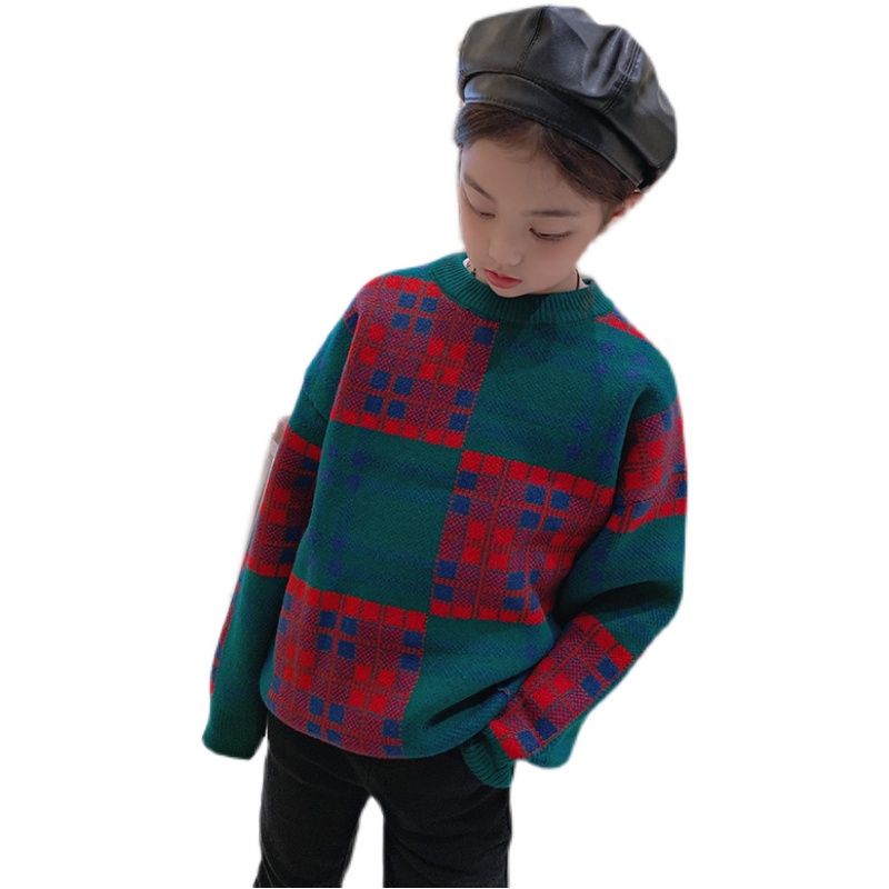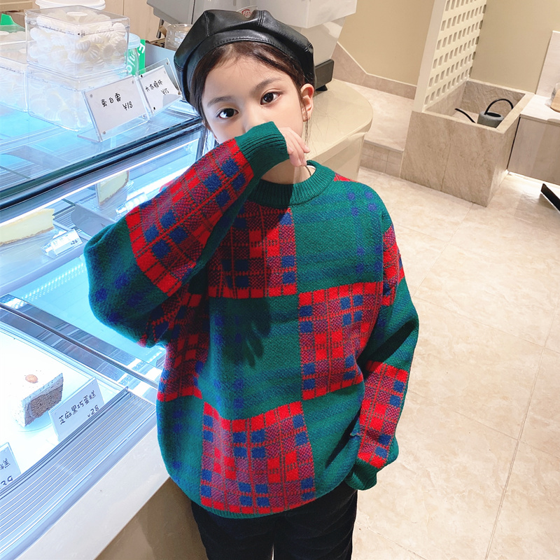 South Korean children's clothing 2021 winter new boy girl retro jacquard round collar fur coat with big child knit blouse