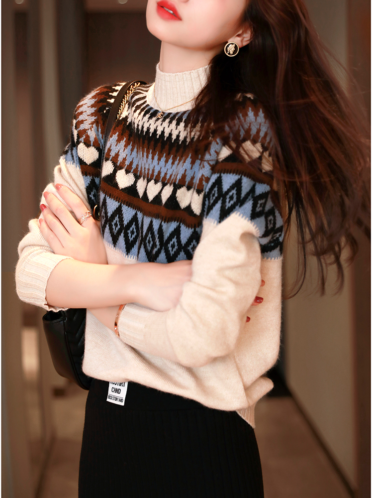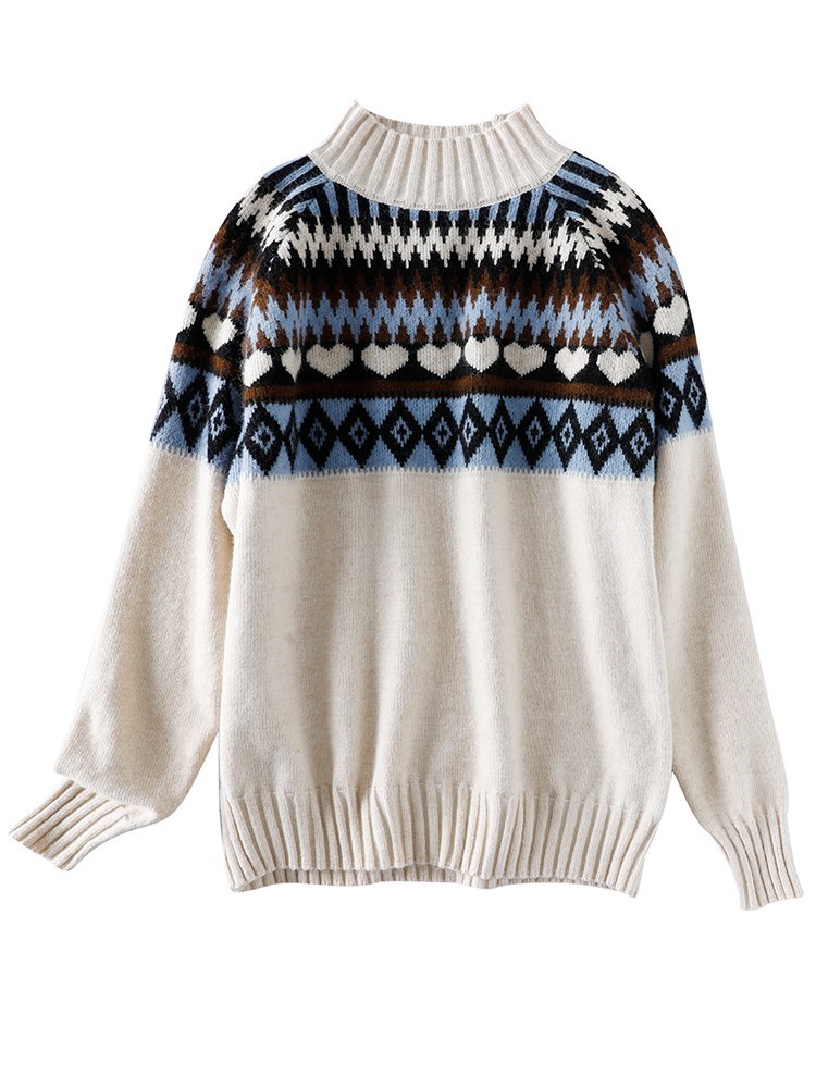 Hardwool knitted and blouse in 2022 new loose and half - collar sweater lazy wind woman