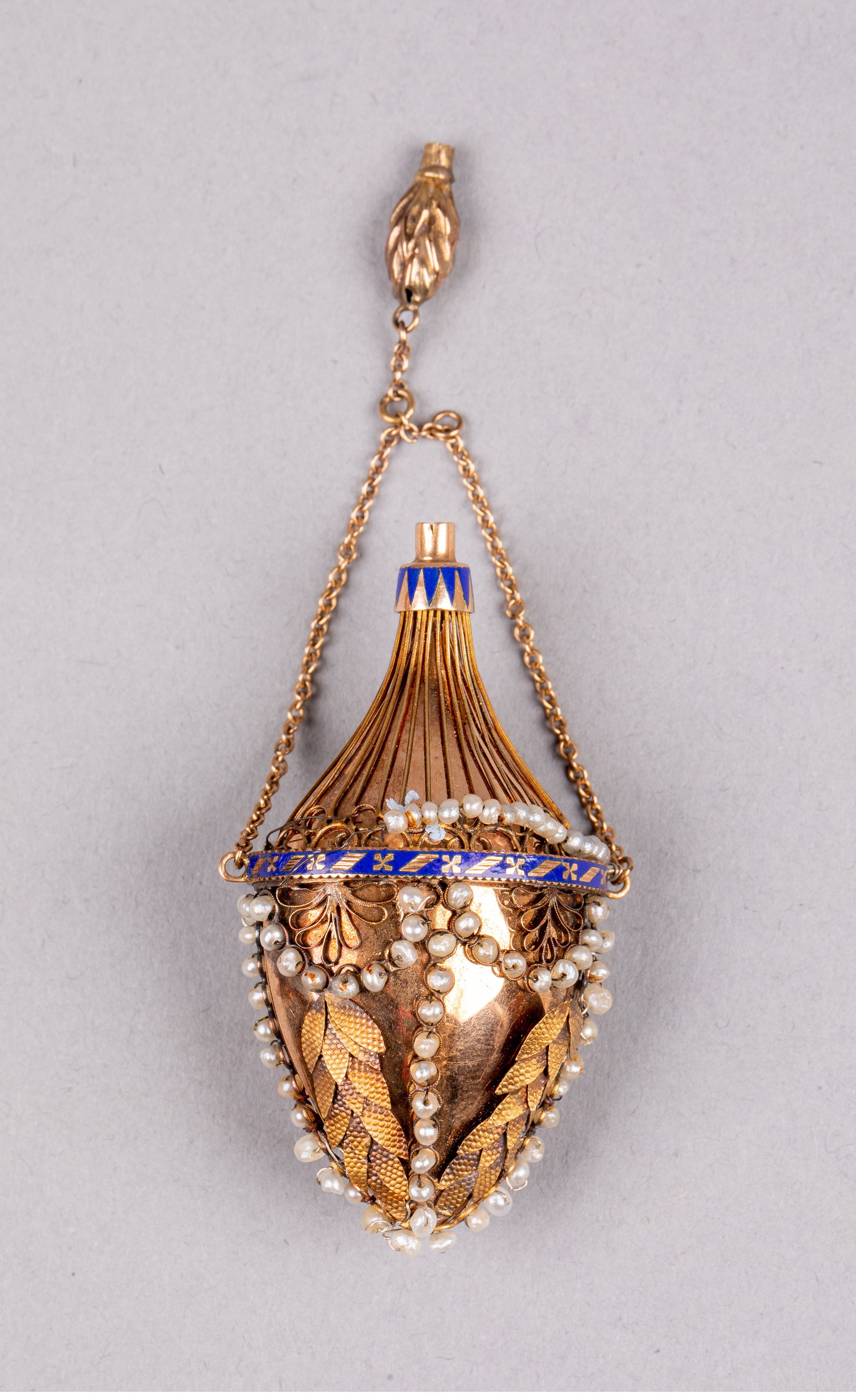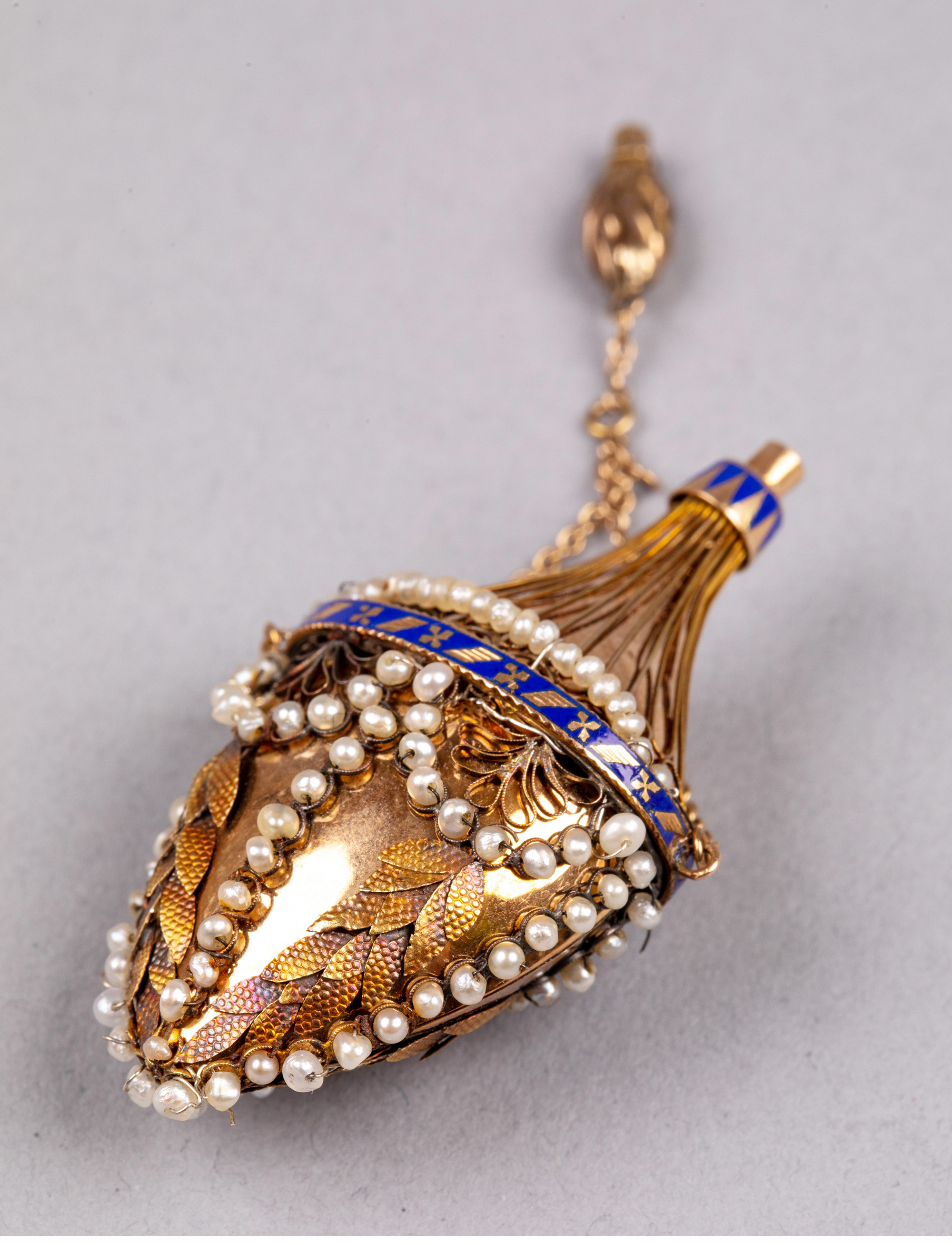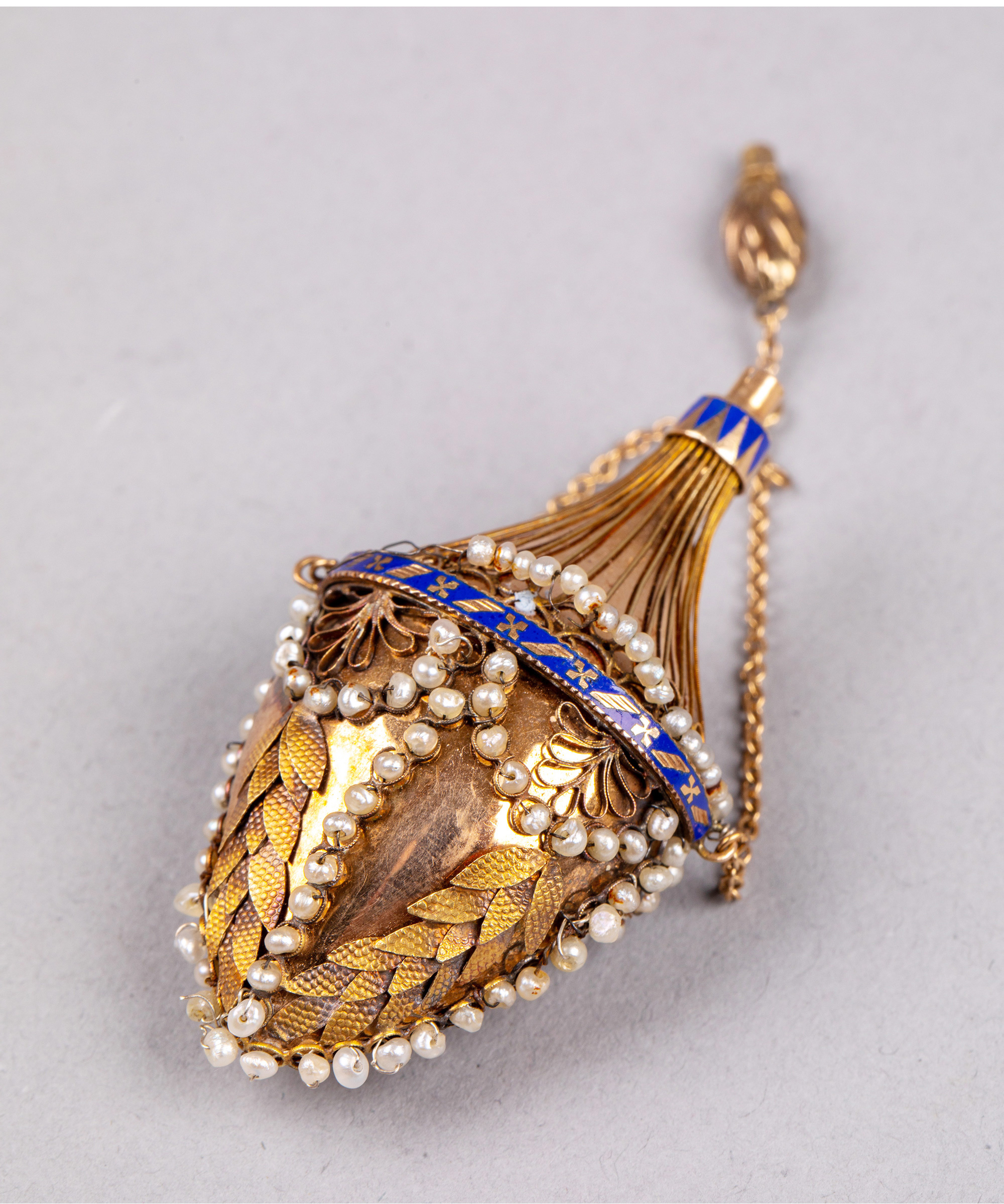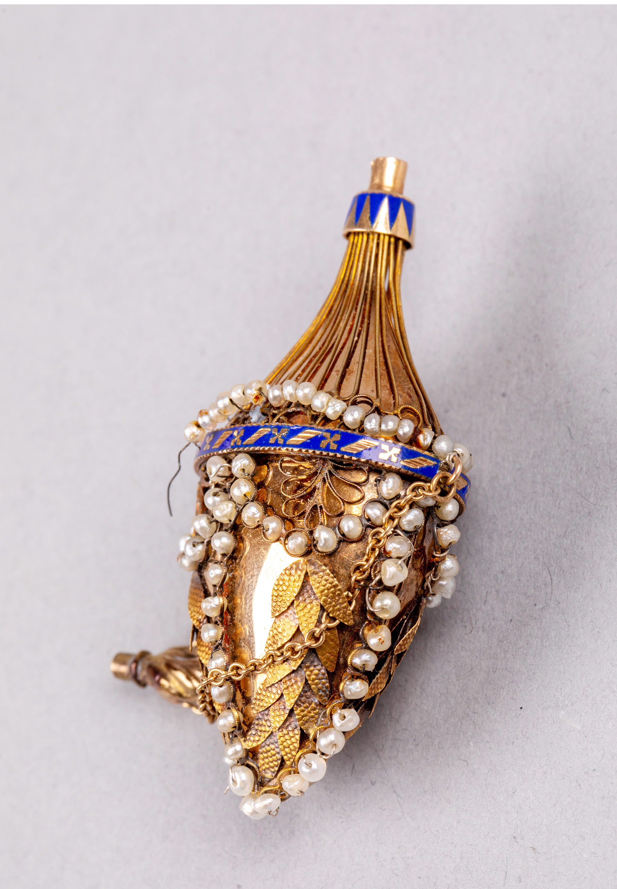 Unicorn Deer Atlantic Antique French Gold Inlaid Blue Enamel Pearl Egg Wakening Salt Bottle Perfume Bottle