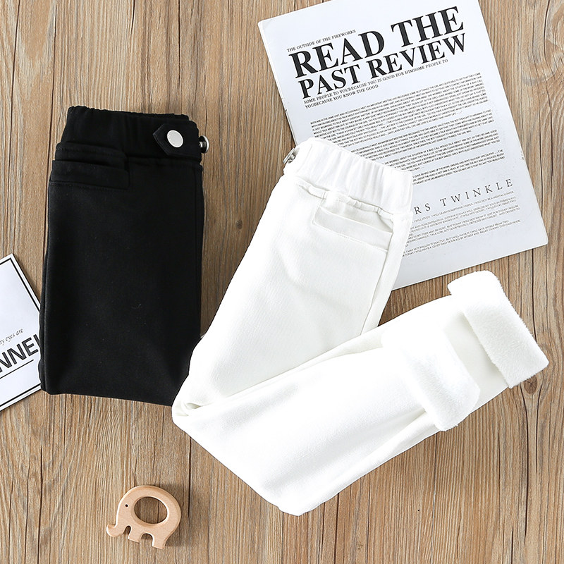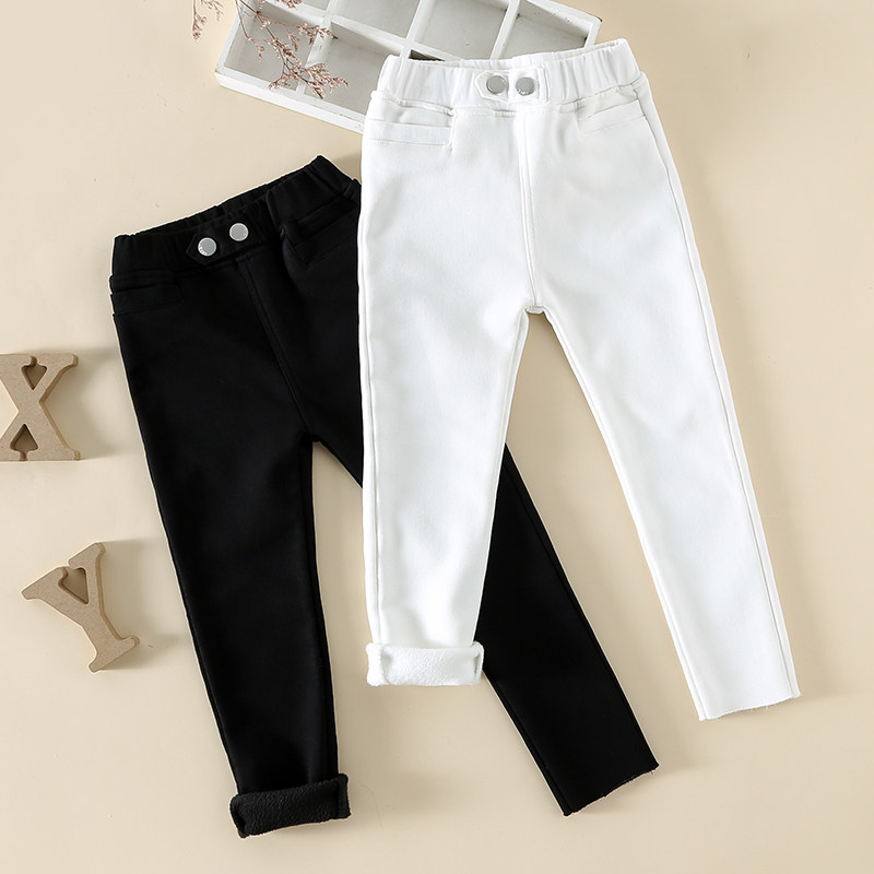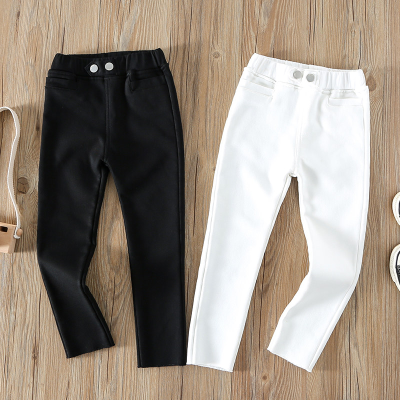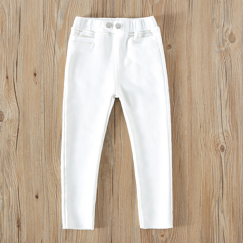 Girls' pants spring and autumn children's elastic magic pencil pants thin velvet one velvet white jeans Western style
