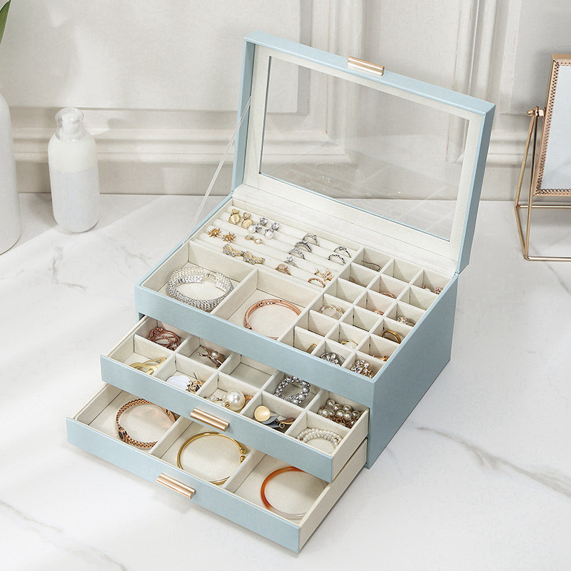 Superior Transparent First Decorated Box Large Capacity Earrings Earrings Accessories Ring Ornament Light Extravagant and delicate containing box anti-oxidation