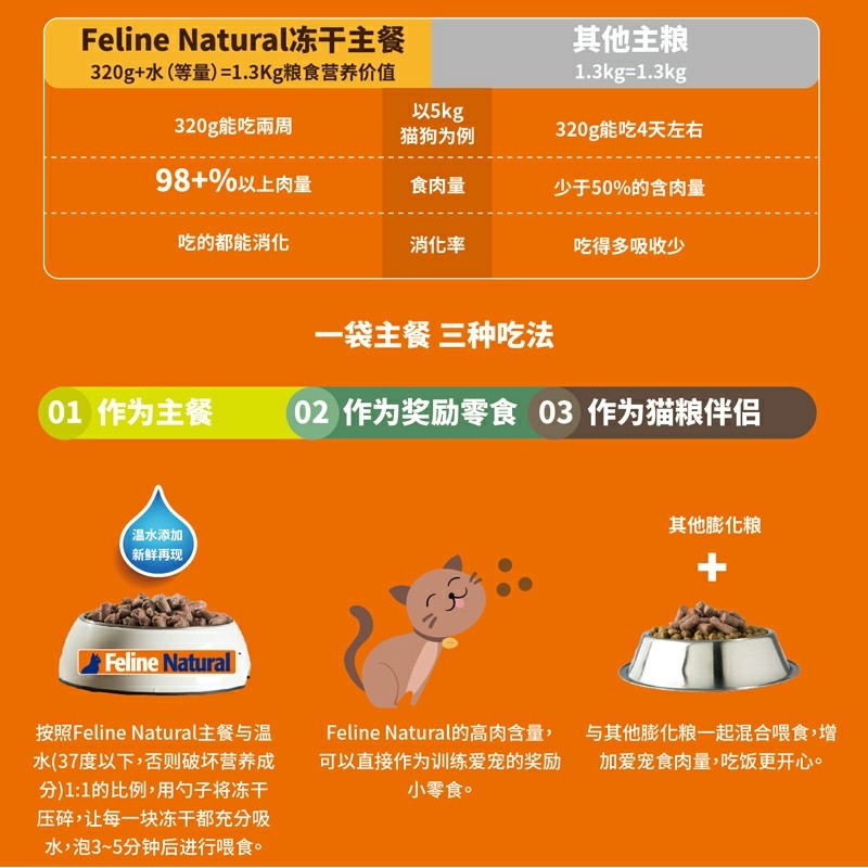 FelineNatural New Zealand imported K9 cat food freeze-dried raw meat cat staple food fattening gills 320g