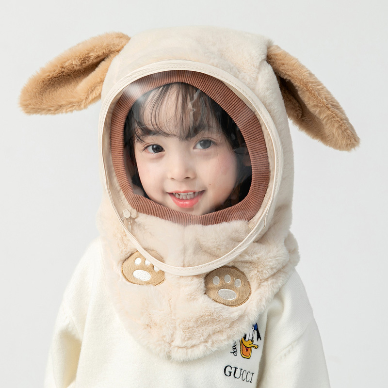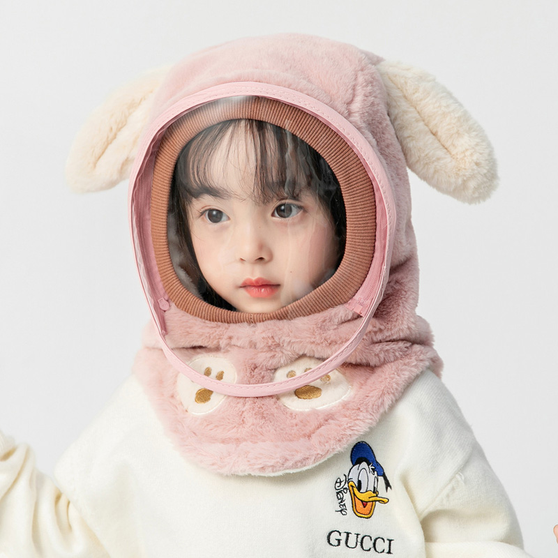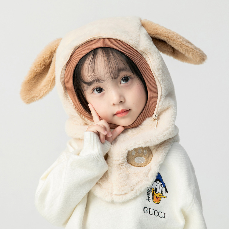 Children's hat winter anti-droplet plush hat scarf scarf one-piece boy and girl cute baby hat