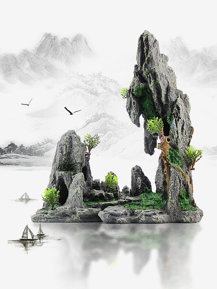 Fish tank building simulation fake mountain package resin fake mountain stone head building view aquarium decoration fish tank simulation stone