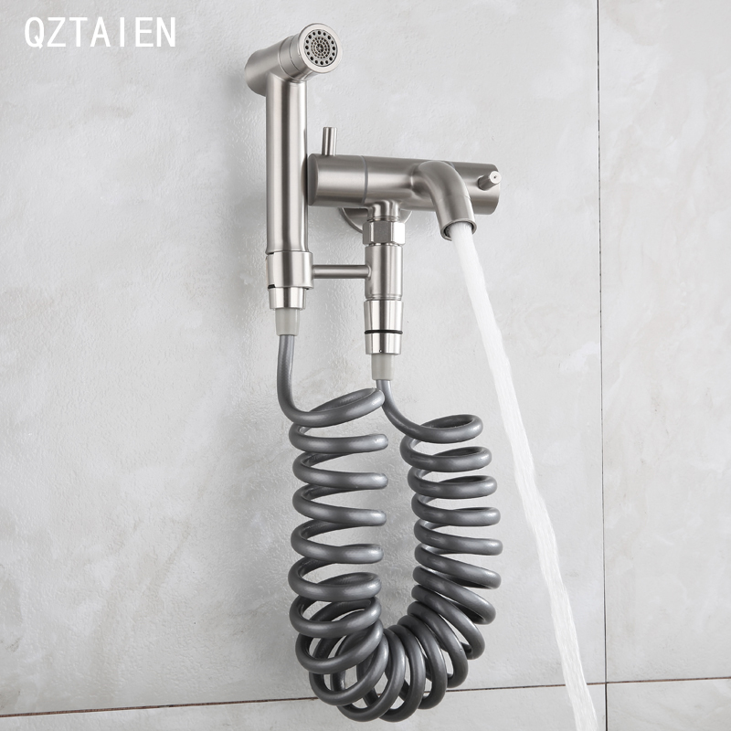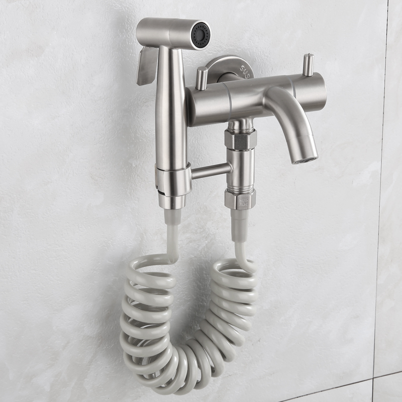 304 stainless steel one-in-two-out washing machine buckle water nozzle dual-use double-cut mop pool faucet spray gun set