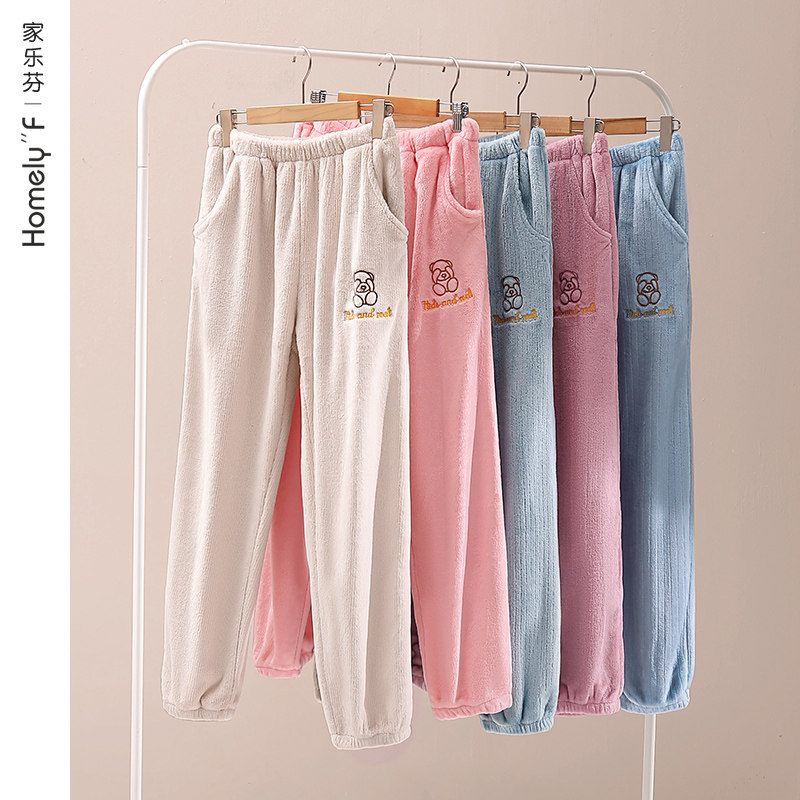 Sleeping Pants Lady Home Pants Coral Suede Long Pants Autumn Winter Warm Pants Flannel Velvet Gush Thicken large size Exterior Wear