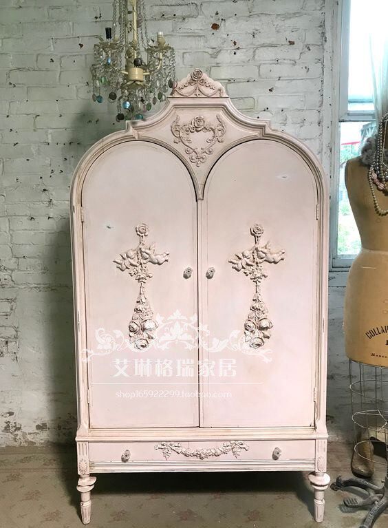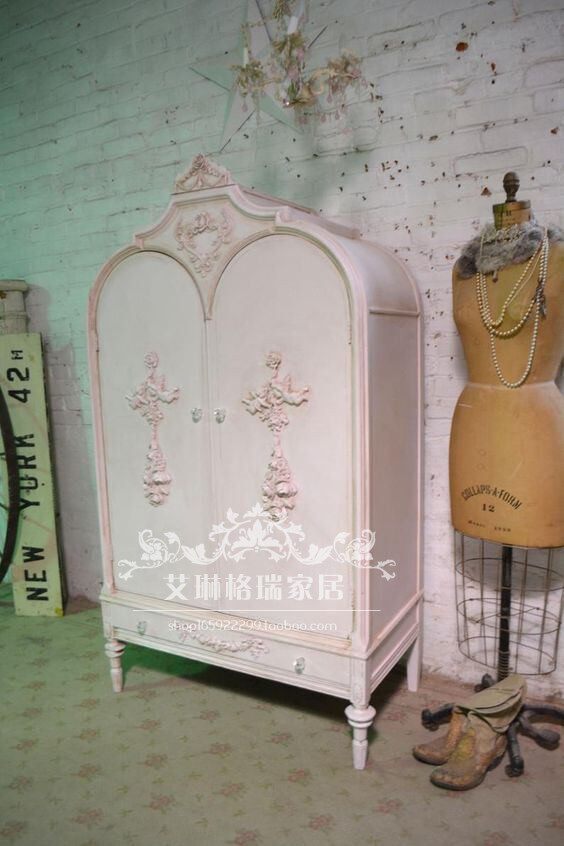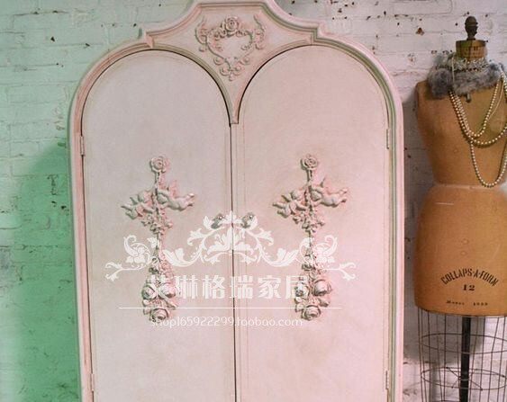 Skyair the same pink wardrobe American style retro countryside solid wood flat open door closet Photographer is innate