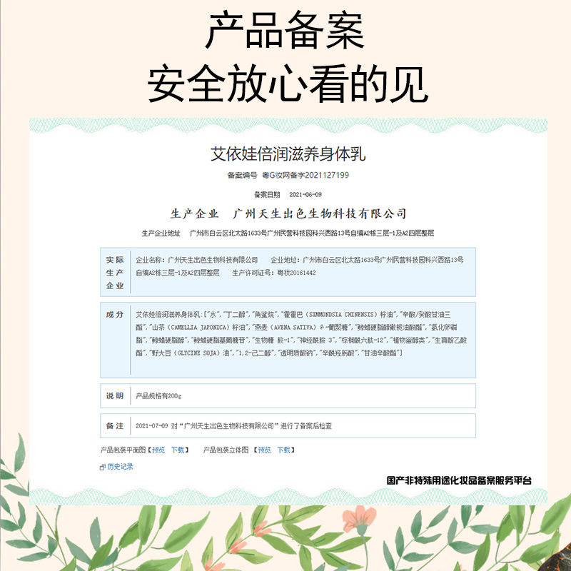 Cosmetics record number Registration certificate number: