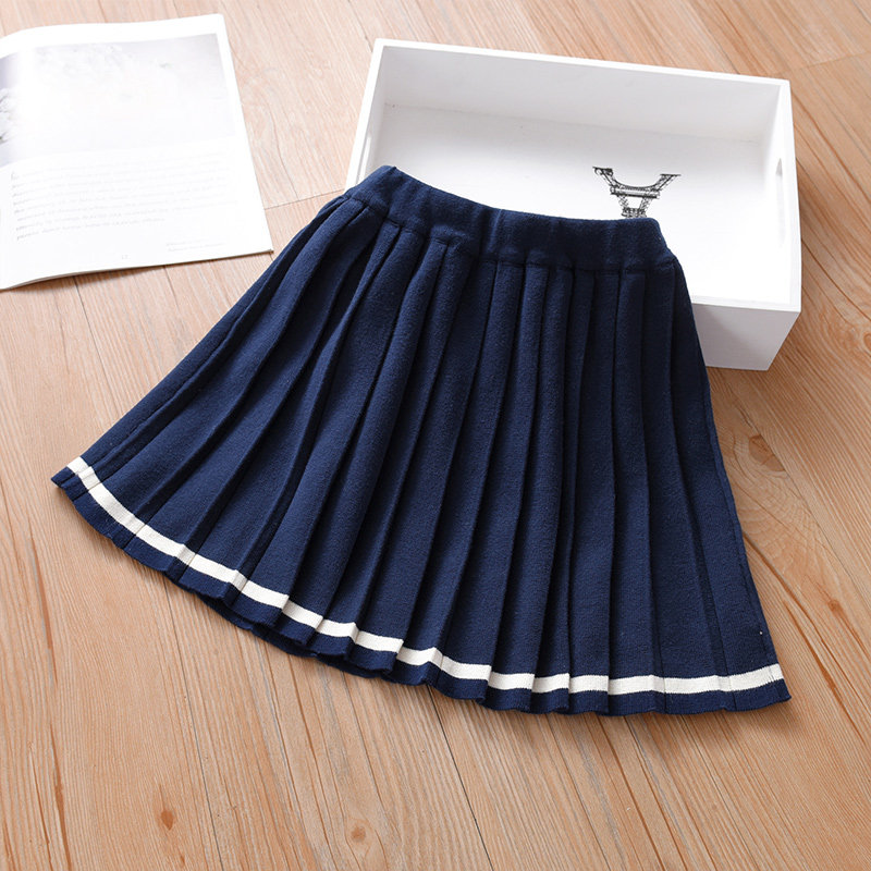 Girls wool skirt spring and autumn knitted pleated skirt children's little girl 2022 autumn new Western style autumn skirt
