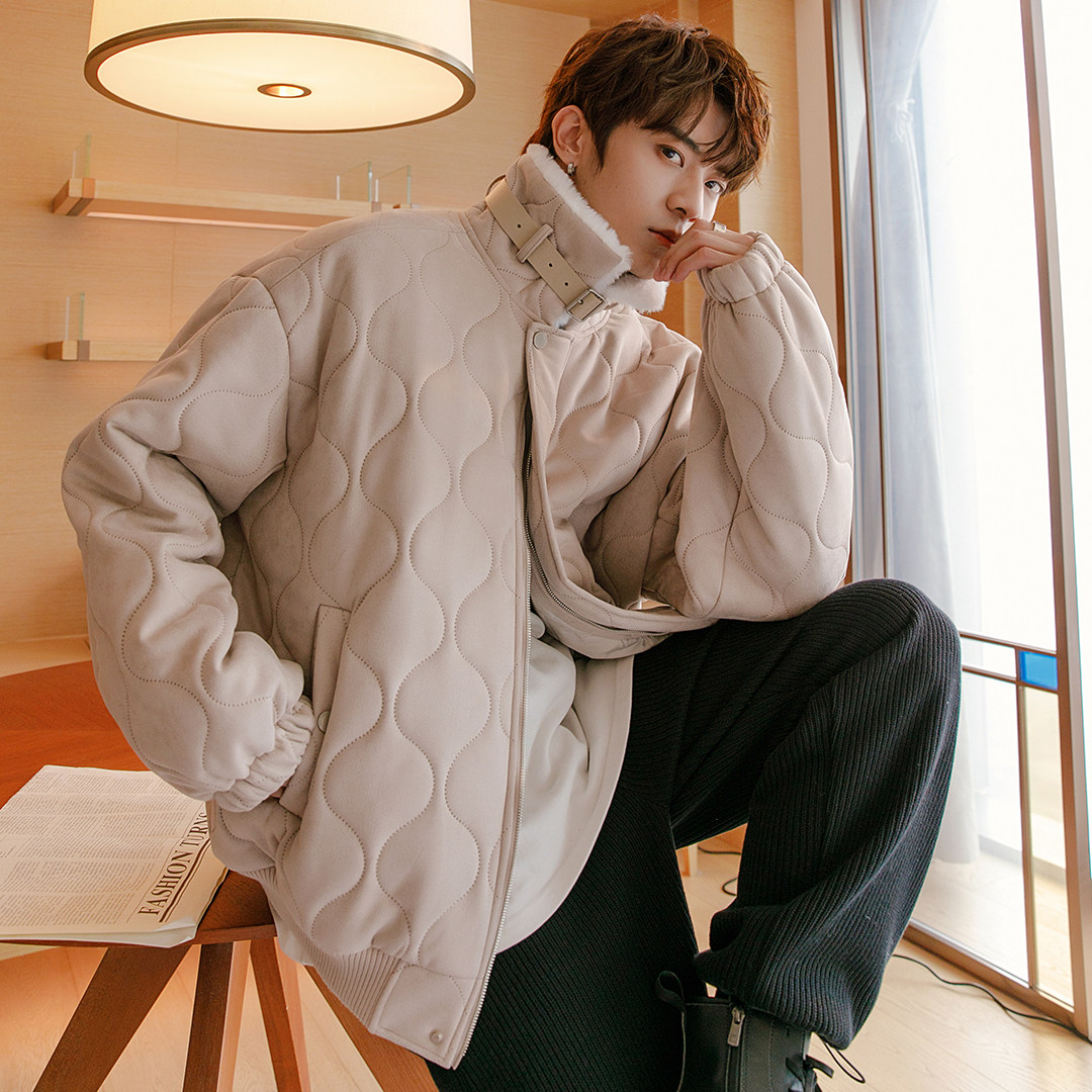 CHICERRO Sicilian Men's Cotton Cotton Gourd Pattern Suede Coat Loose Casual Thickened Stand Collar Cotton Cotton Men