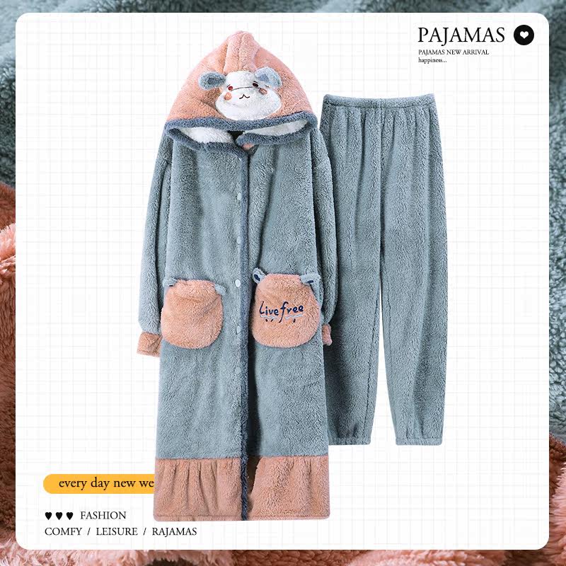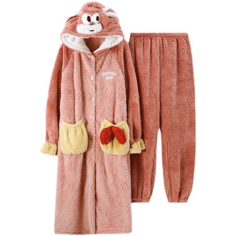 2021 New Coral Suede Pajamas Woman Autumn Winter Thickened Flannel Long Version Pyjamas home Suits Outwear Suits