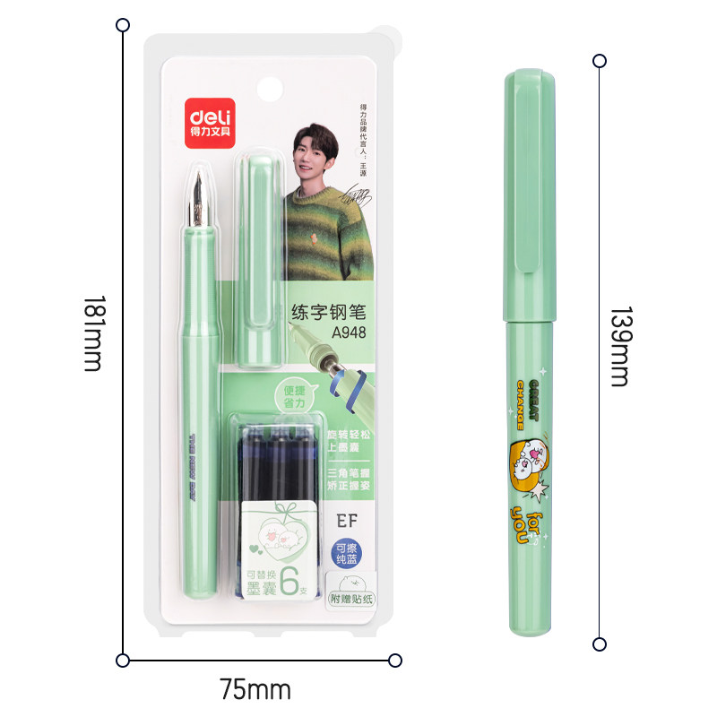 Able Wang Yuan Fountain Pen Elementary School Elementary School Students with Interchangeable Ink sacks Primary School Students can rub beginners' pens