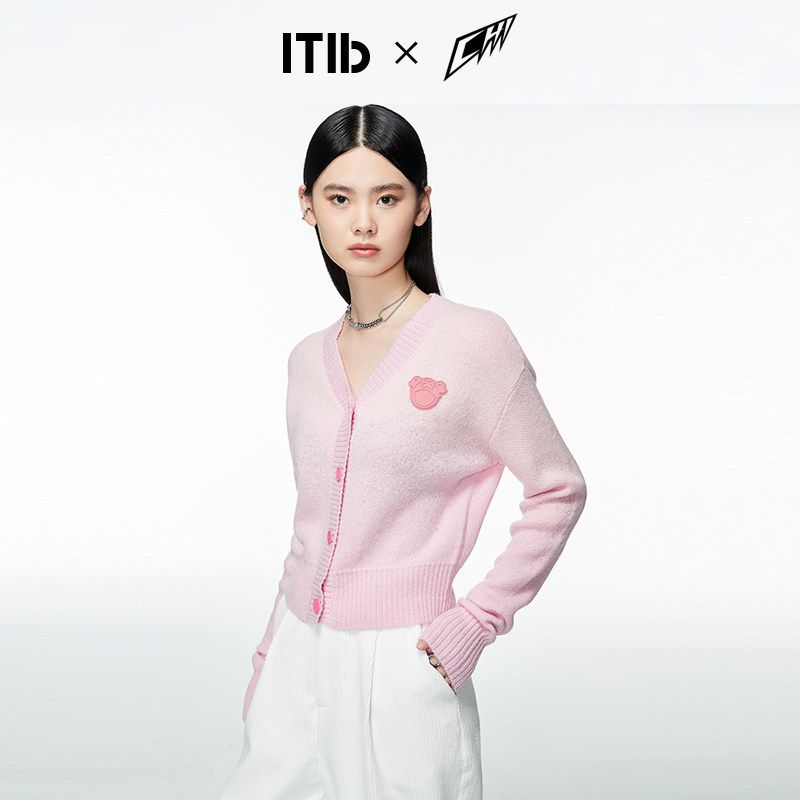 ITIB × pool Lei joint design of the collection waist gradually floor V collar sweater sweater with short section loose 100 lap blouses