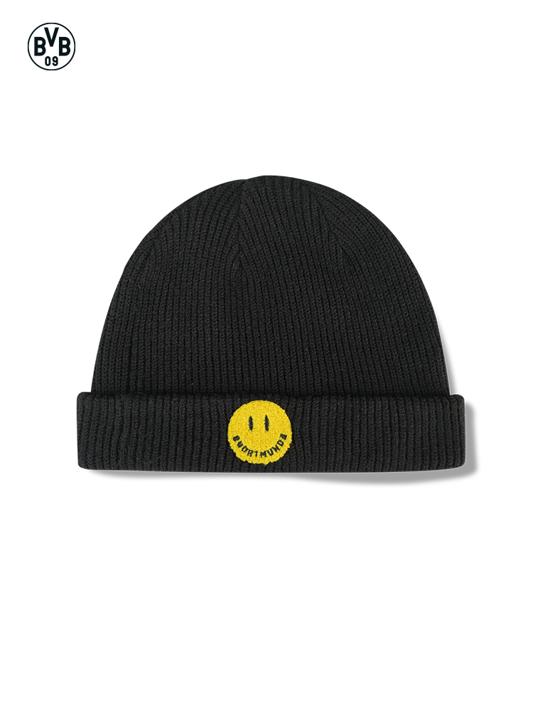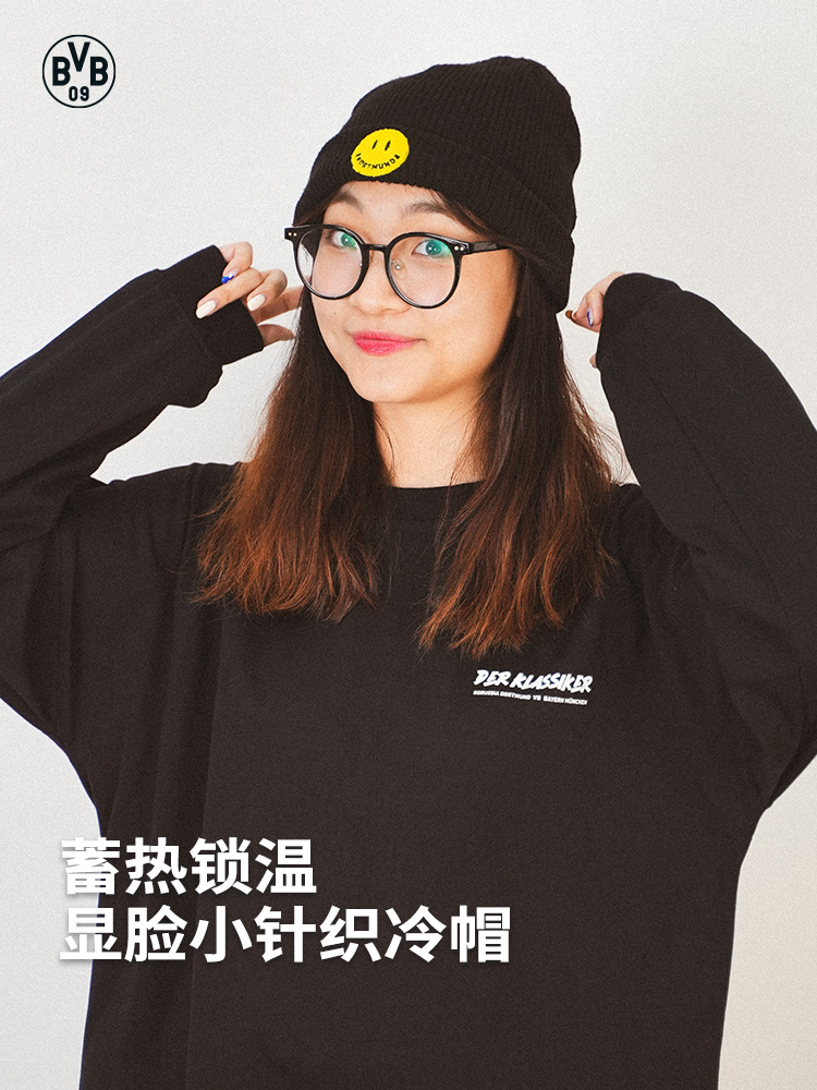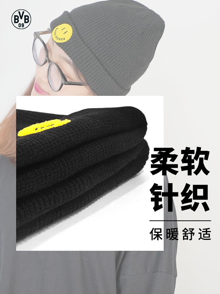 Prussian Dortmund BVB smiley knitted hat autumn and winter wool black cold hat big head circumference men and women tide