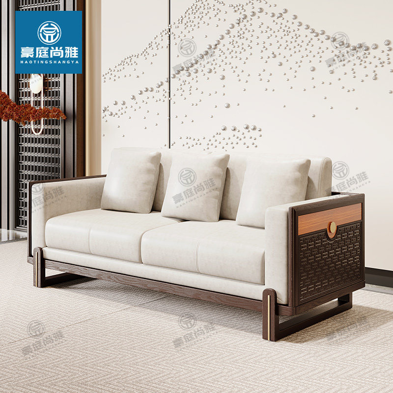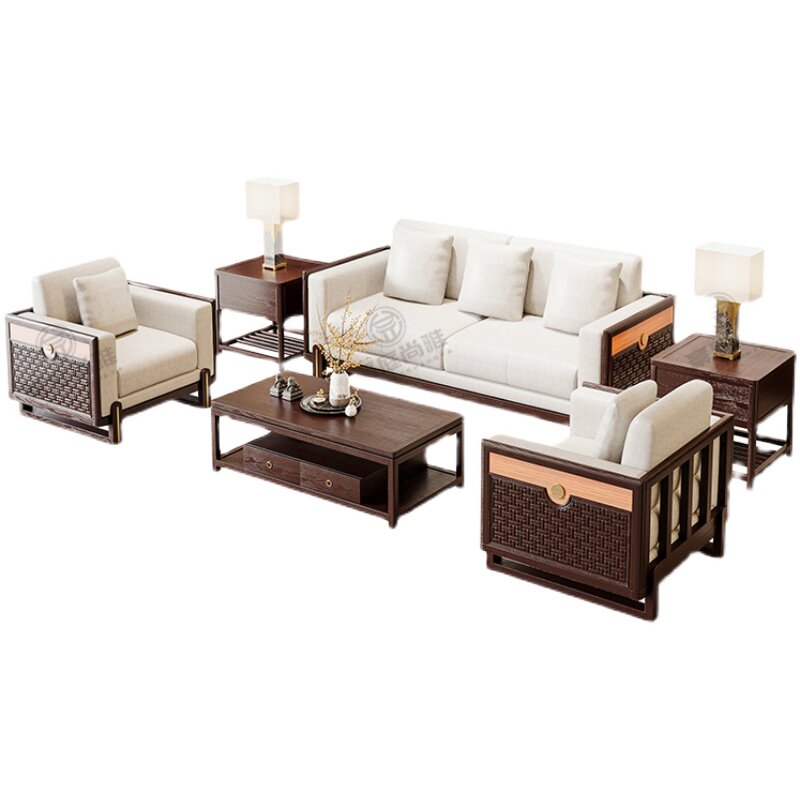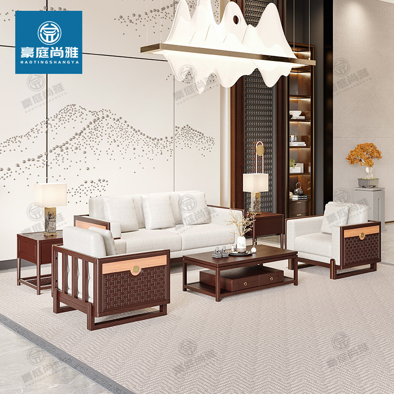New Chinese-style solid wood sofa high-end villa size light luxury ash 1 2 3 sofa living room furniture
