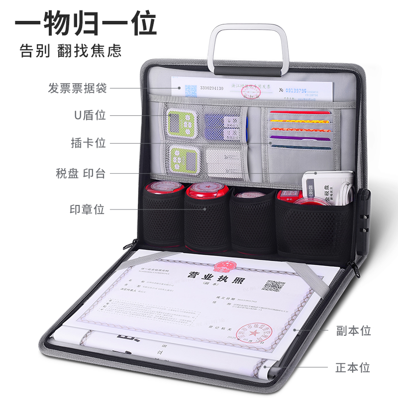 Seal Containing Package Public Seal Containing Box Large Capacity Carry-on Integrated A3 Business License Positive Copy Cashier Bag A4 File Bag Bill Code Lock Financial Print Chapter Box Seal Box-Taobao