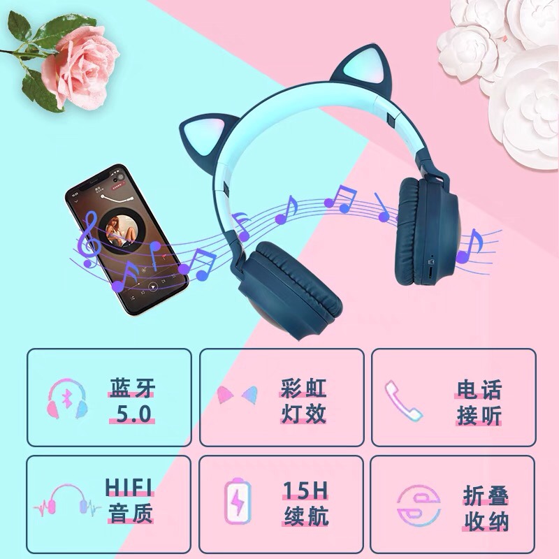 Cat ears head-mounted Bluetooth headset wireless noise reduction plug-in card for children and students learning to listen to songs and games with long battery life