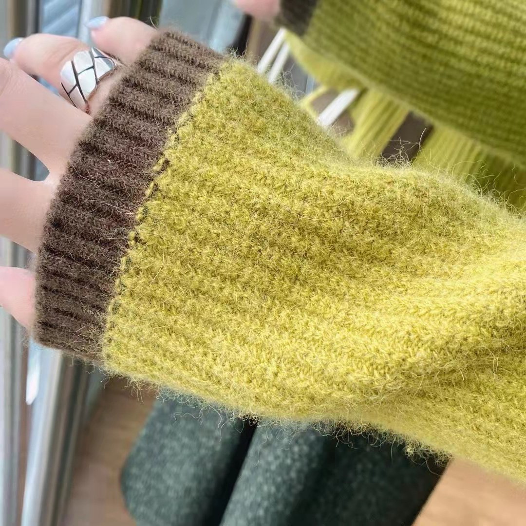 European station women's clothing 2021 high-end European goods heavy industry high-end green contrast color raccoon velvet soft waxy sweater women's winter