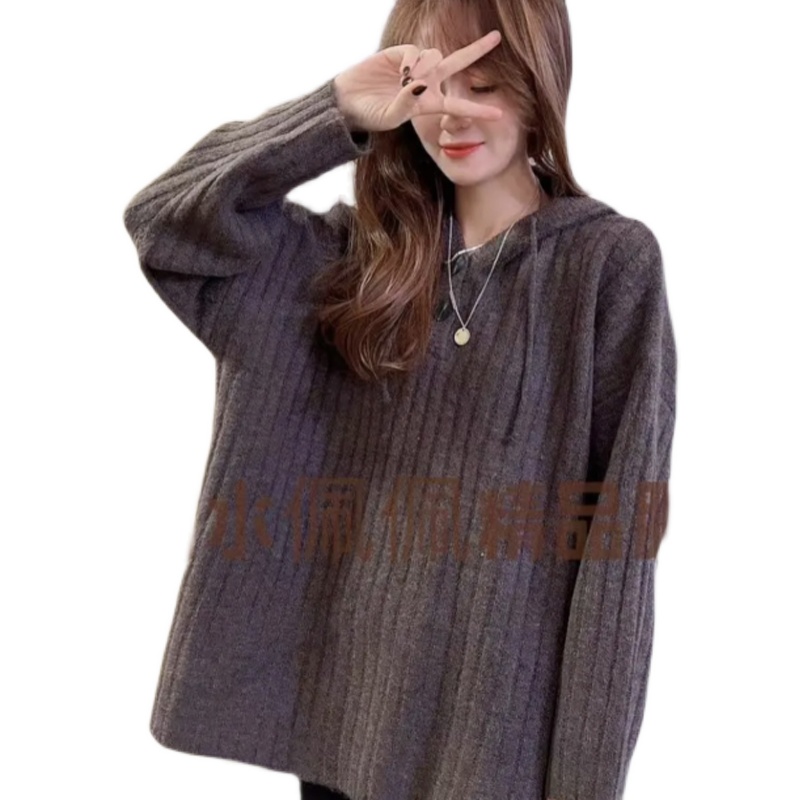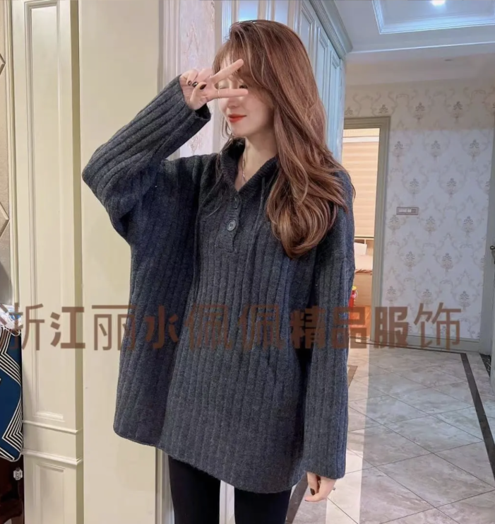 Middle - long - sleeved sweater in 2022 new autumn and winter relaxed wear Korean - sleeved lazy knitting shirt