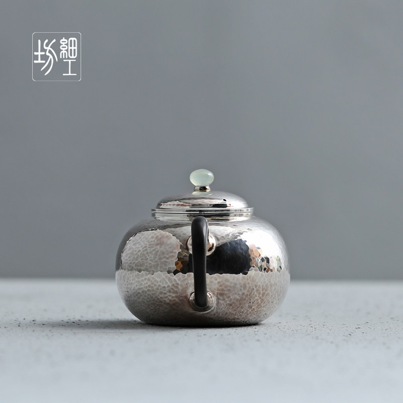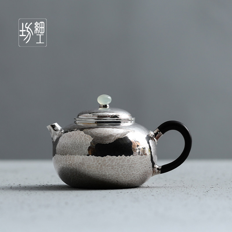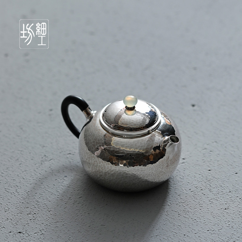 Fine Works Workshop Pure Silver 9999 Burnt Kettle Teapot Pure Artisanal One Play Craft Japan Little Silver Pot Teapot