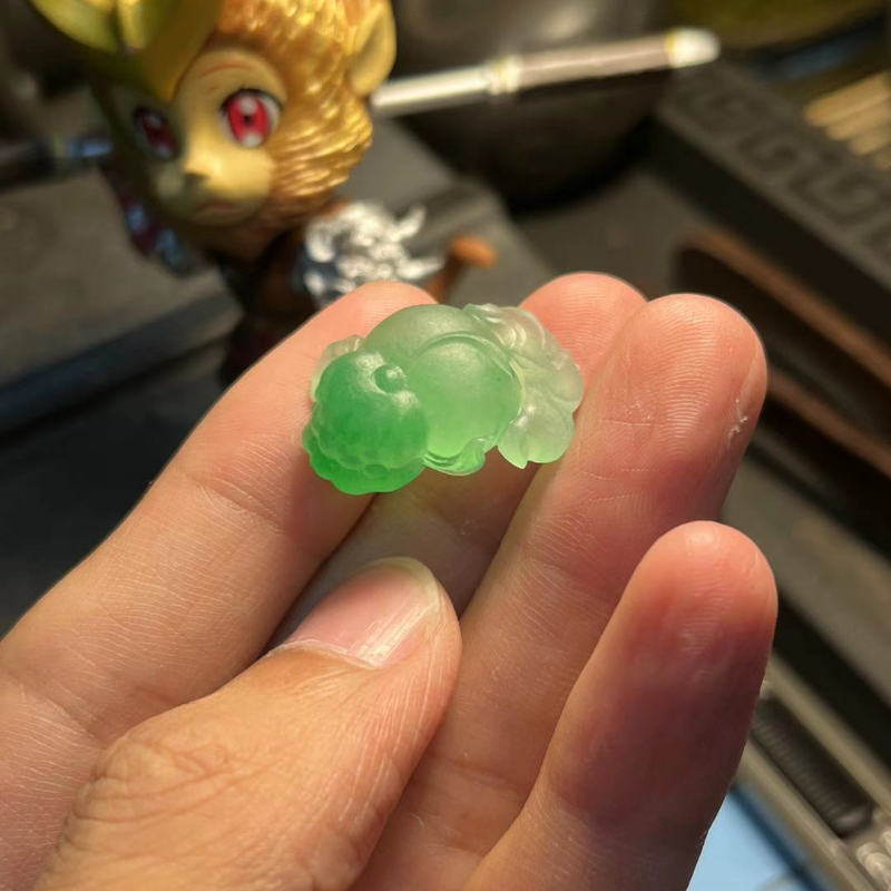 Brother Wukong ice species floating flower yang green goldfish jade female pendant Myanmar A goods jade Jieyang Seiko private shooting invalid