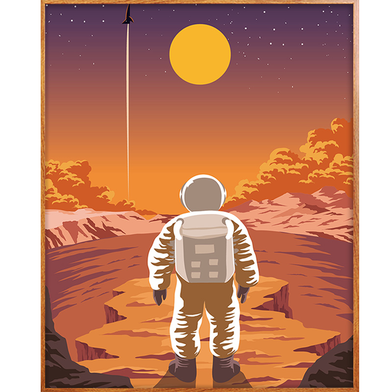 First Art Pie Diy Digital Oil Painting Cartoon Universe Planet Astronaut Hand-painted Decoration Painting Children's House Fill Color Painting