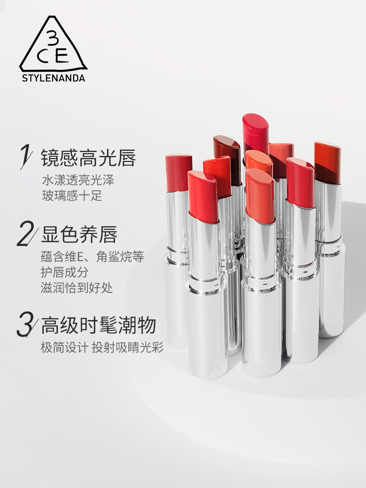 3CE Sanxiyu Silver Tube Mirror Lipstick