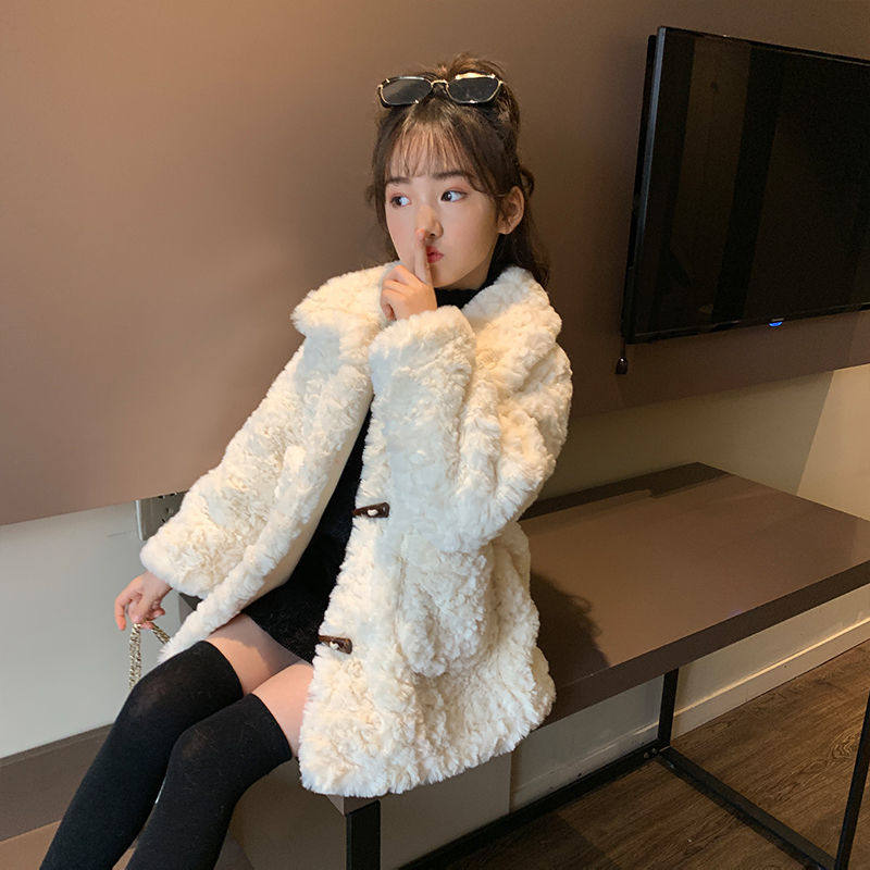 Girls' Sheep Shearing Jacket 2021 New Korean Style Western Style Autumn and Winter Dress Fur All-in-One Lamb Fleece Thickened Sweater