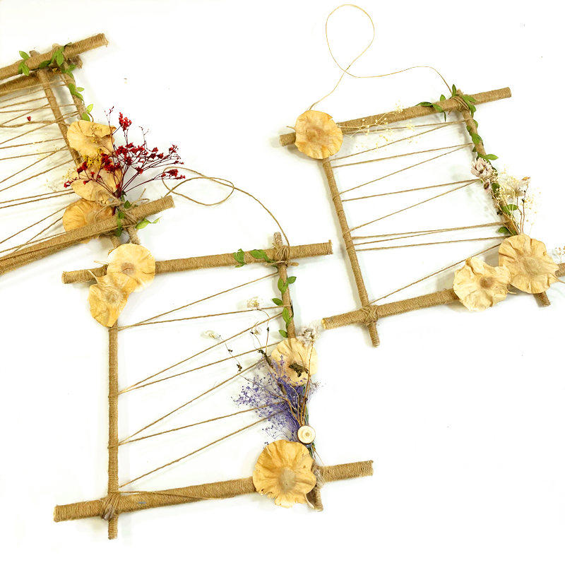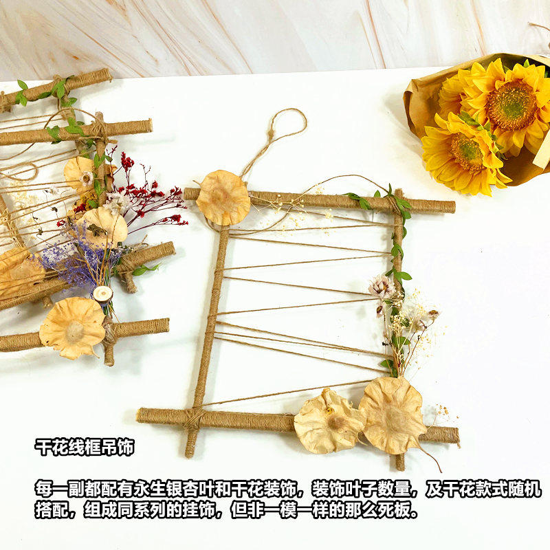 Homemade new sensual retro twisted hemp rope drying floral pendant air-dried ginkgo leaf decorated with bamboo sign hanging decoration wall decoration
