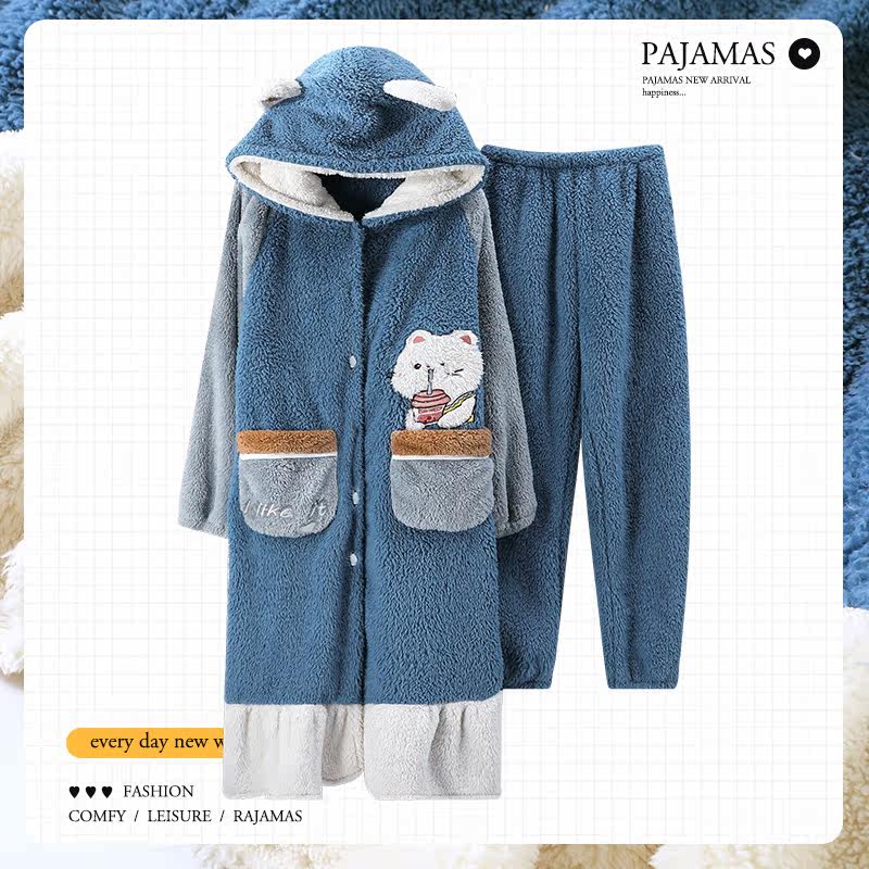 Coral Suede Sleeping Gown Lady Autumn Winter Thickened Garnter Flannel Pyjamas Woman 2021 New winter Home Suits Suit