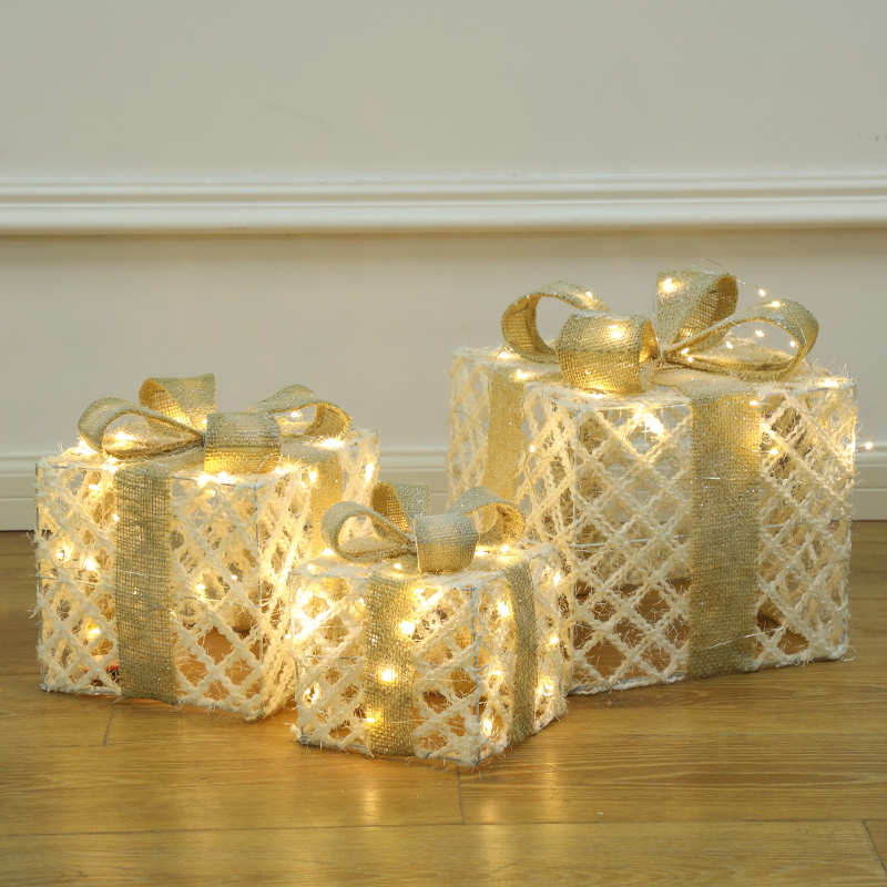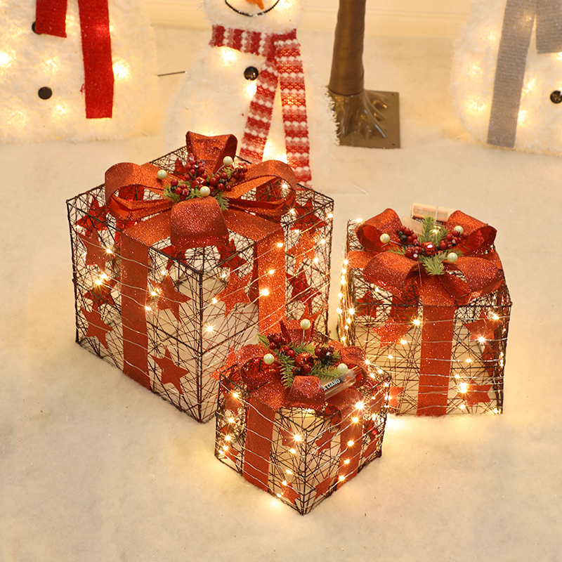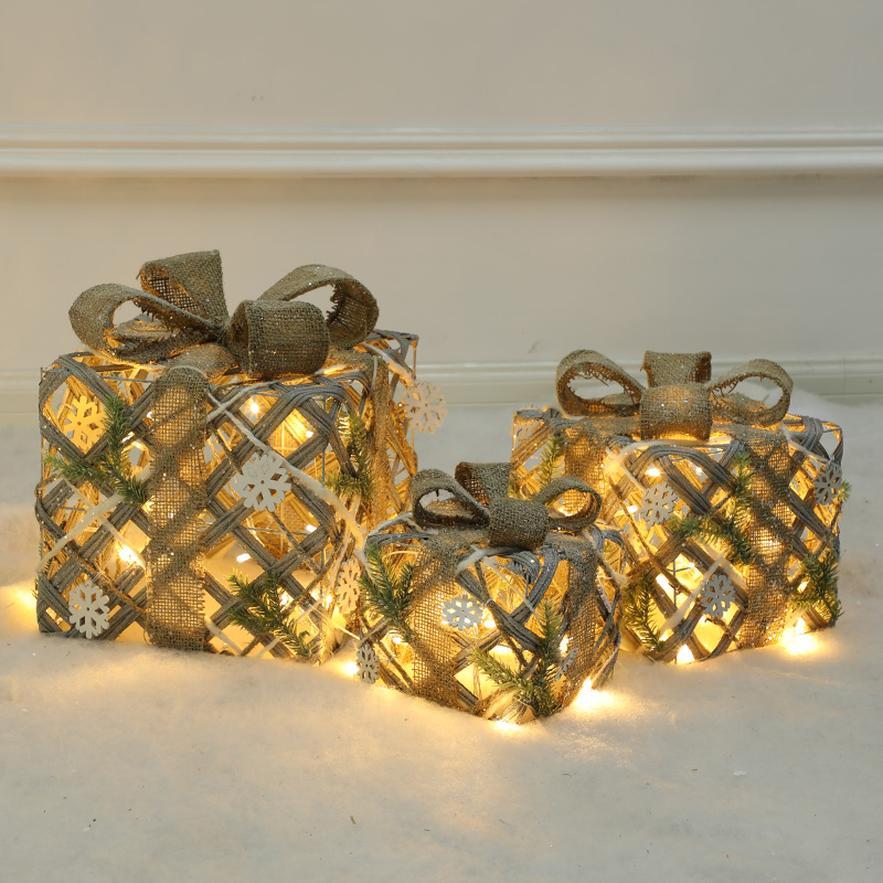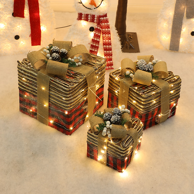Rattan pine cone gift box three-piece set to send lights Iron red five-pointed star gift box three-piece set to send lights Rattan snowflake gift box three-piece set to send lights Scottish red checkered gift box three-piece set Scottish white checkered gift box three-piece set