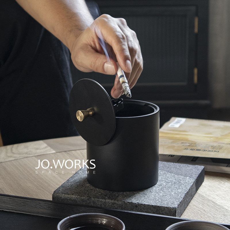 JO WORKS Industrial Wind Anti-dust Ashtray Japan Style Home Bring Lid Tobacco Cylinder Metal Creative Gift Cigarette Punch