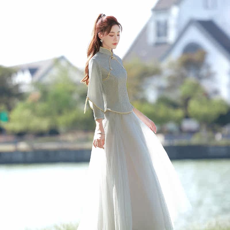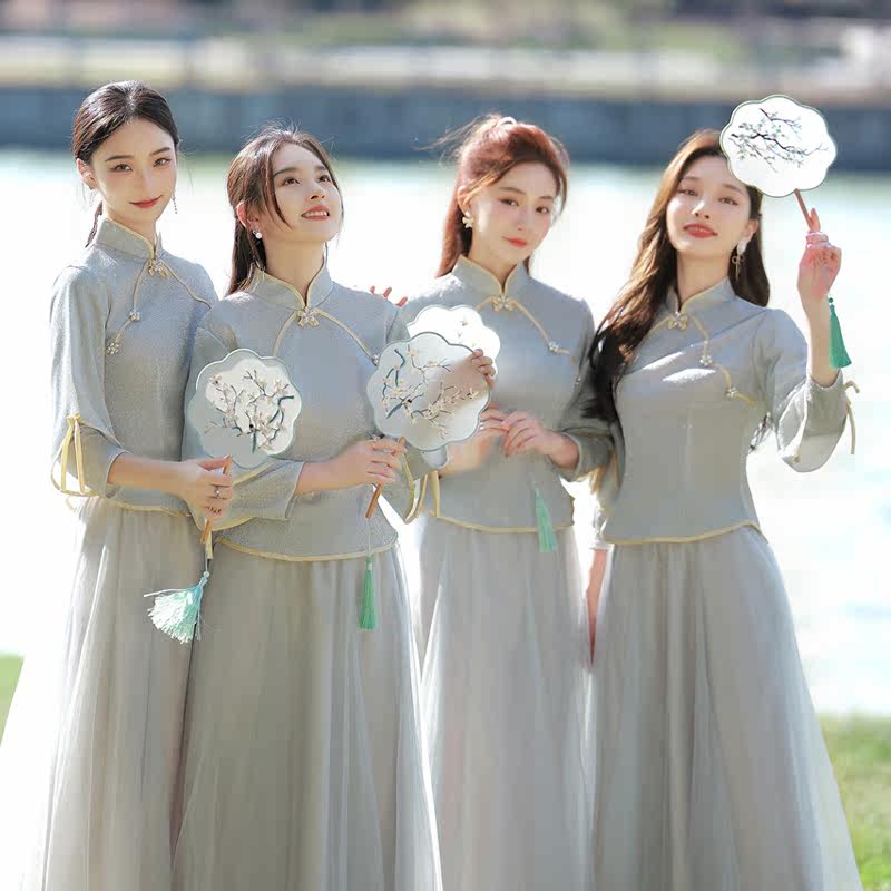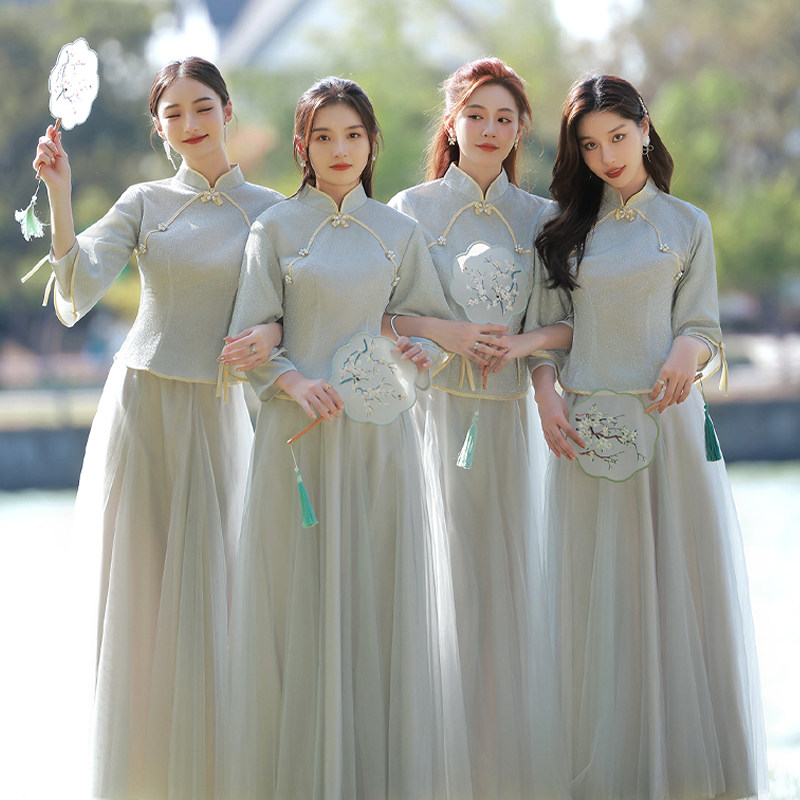 Bridesmaid clothing rental 2022 new autumn and winter sister group skirt niche Chinese style small man wedding dress female rental