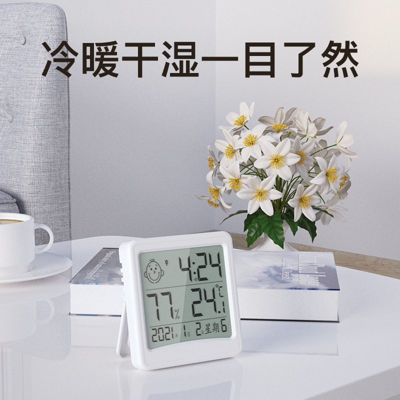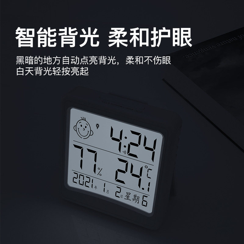 Wall-mounted wall desktop large screen electronic digital clock alarm clock calendar week temperature and humidity meter automatic night light home