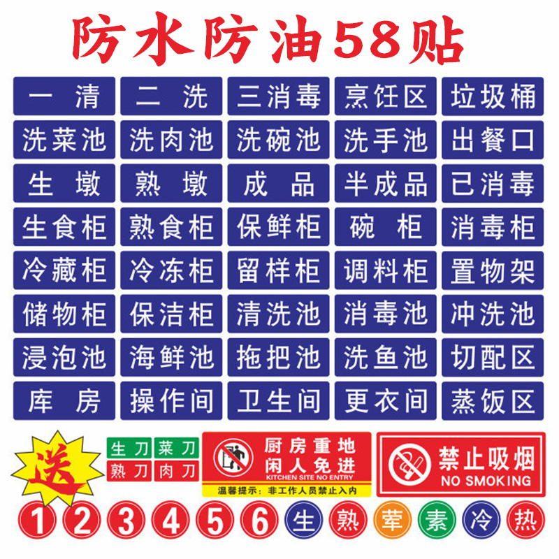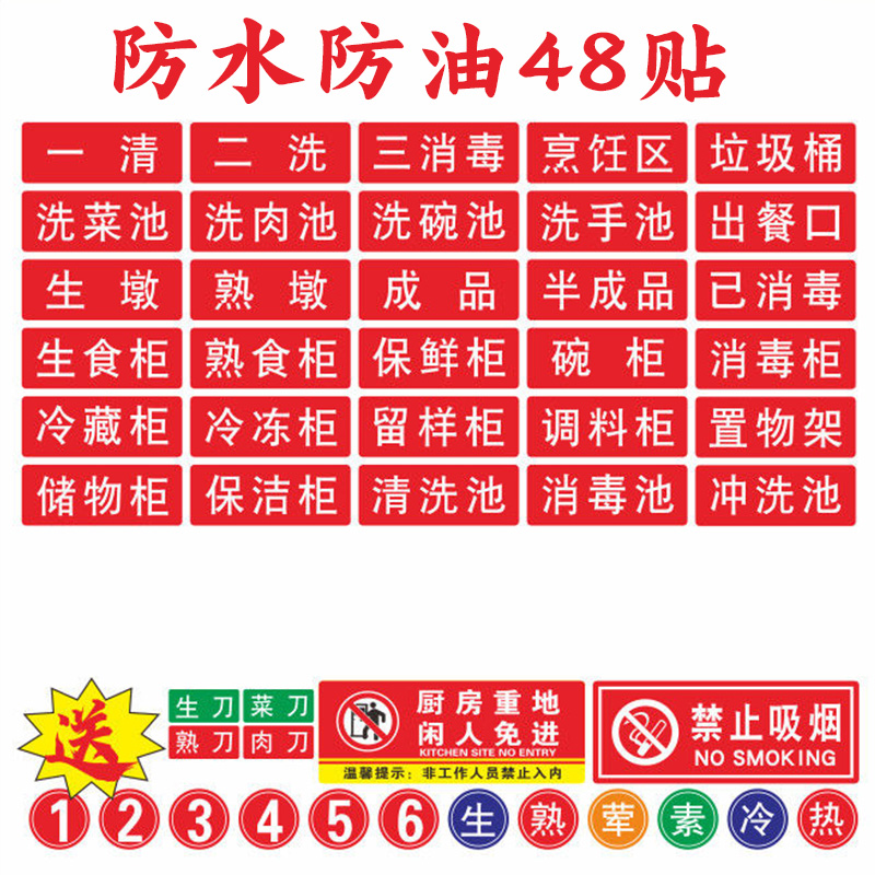 Canteen stickers one cleaning two washing three disinfection kitchen unit restaurant strong sticky stickers waterproof label logo stickers