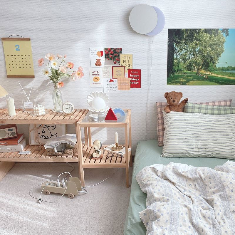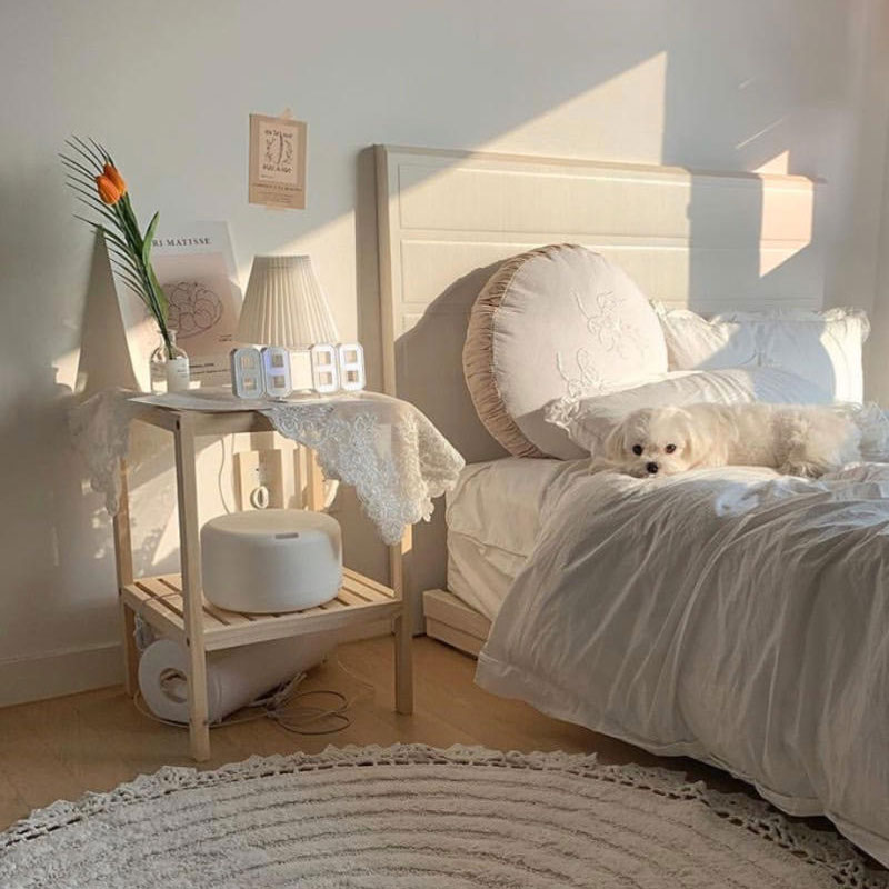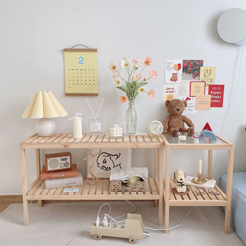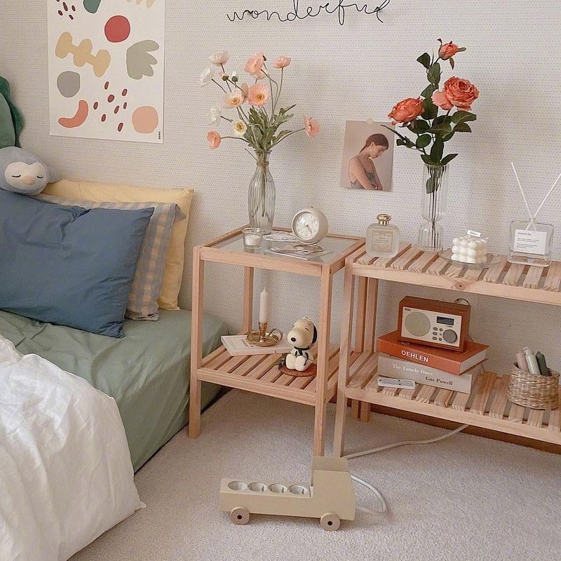 Bedstand tempered glass desktop ins bedroom bedside small table small tea table sofa side several rows of skeleton solid wood