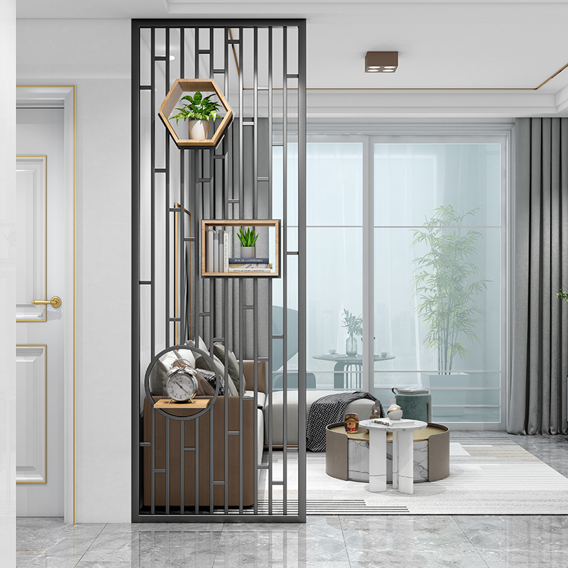 Iron metal screen partition Nordic living room light luxury grille entry porch wash table lattice hollow stainless steel