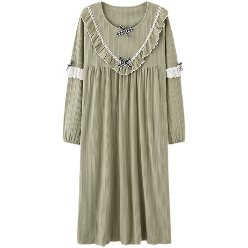 Princess Wind Sleeping Dress Lady Spring Autumn Season Sleeping Clothing Light Green With Chest Cushion Long Sleeve Pure Cotton 2021 New Winter Home Clothing