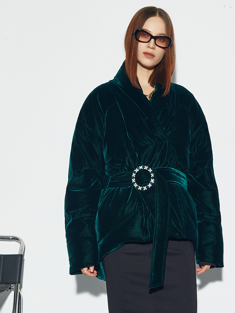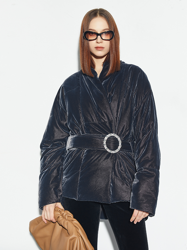 Boss Z's silky smooth suede down jacket goose down filled high-gloss aura modern lady loose down jacket