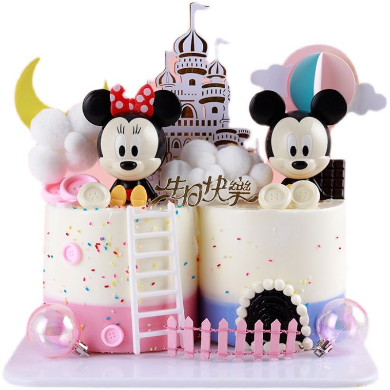 Mickey Mouse Double Egg Simulation Cake Model 2021 New Net Red Cartoon Plug-in Birthday Plastic Sample Customization