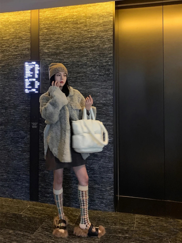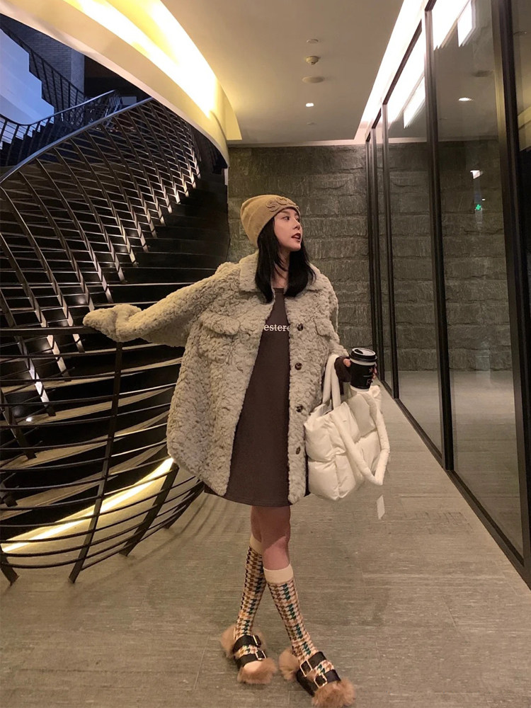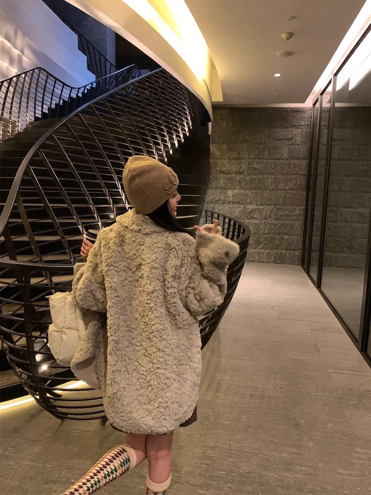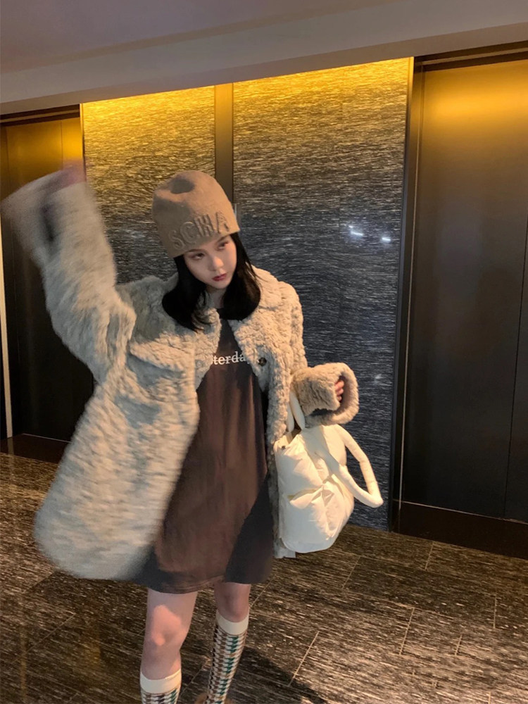 2022 Haining winter imitation rabbit fur coat women's mid-length loose warm hot lamb plush coat