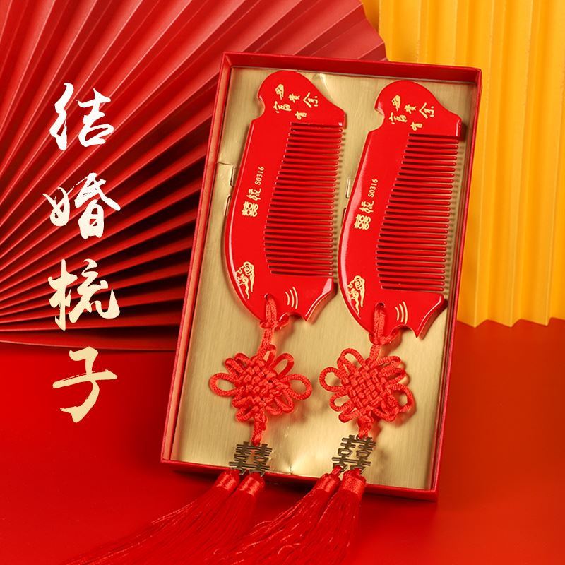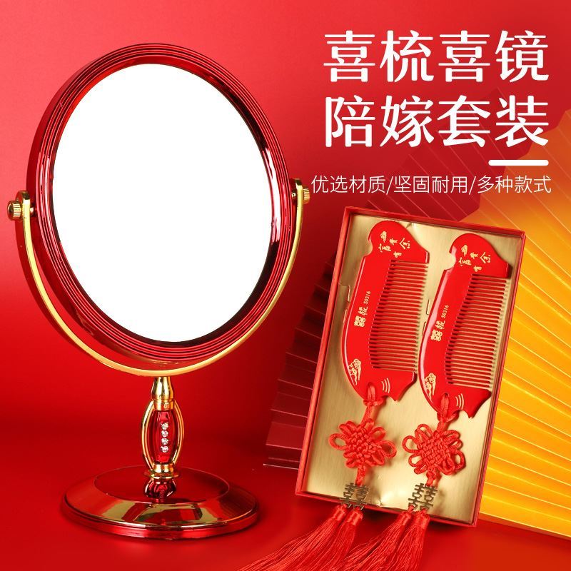 Red comb to marry a couple of accompanied wedding dowry Fancy Mirrors Wooden Comb Bride Suit Gift Mirror Wedding Newlyweds