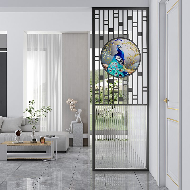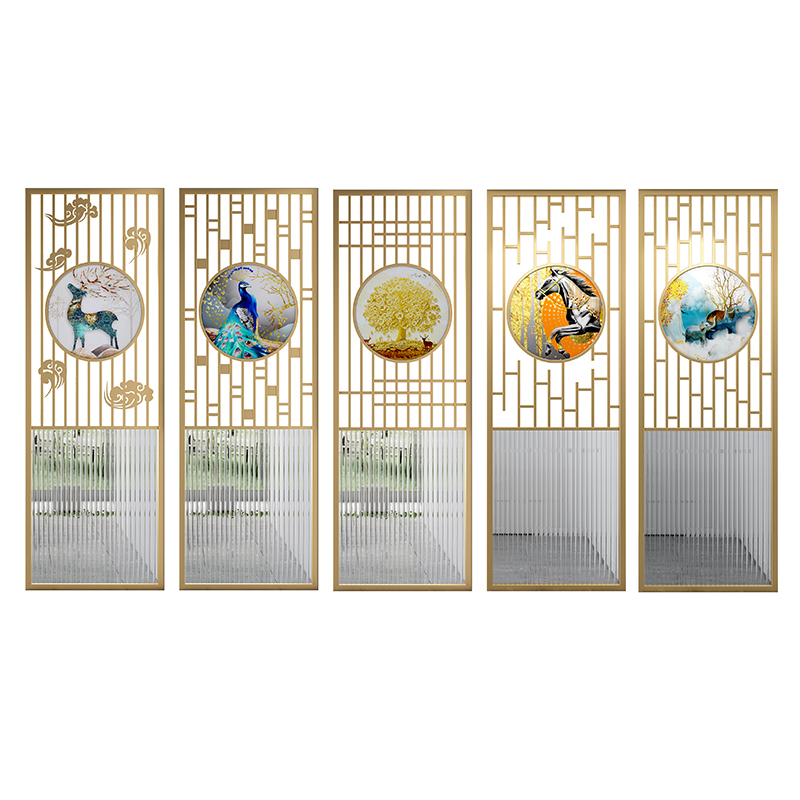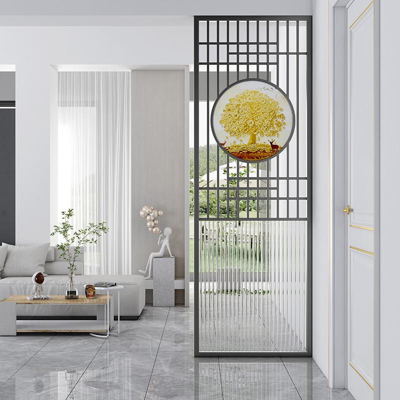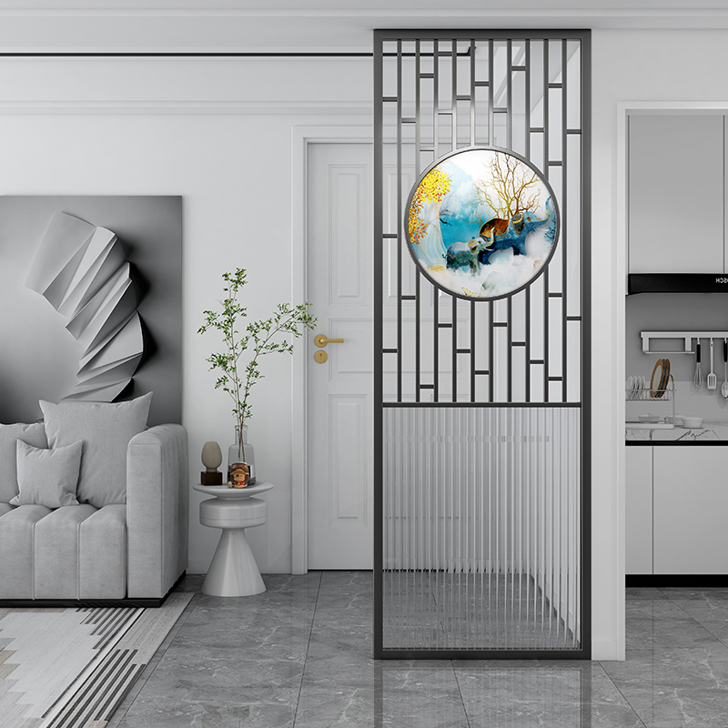 Modern minimalist Changhong glass partition screen Nordic iron light luxury grille living room entry stainless steel washstand