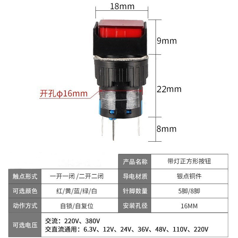 LA16F-11DS LA128A square with lamp button switch self-lock 5 feet 8 feet opening 16mm