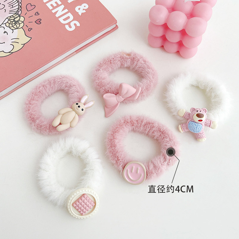 Children's rubber band hair ring female head rope plush powder milk curry color does not hurt hair girl hair ring sweet cute little girl hair accessories